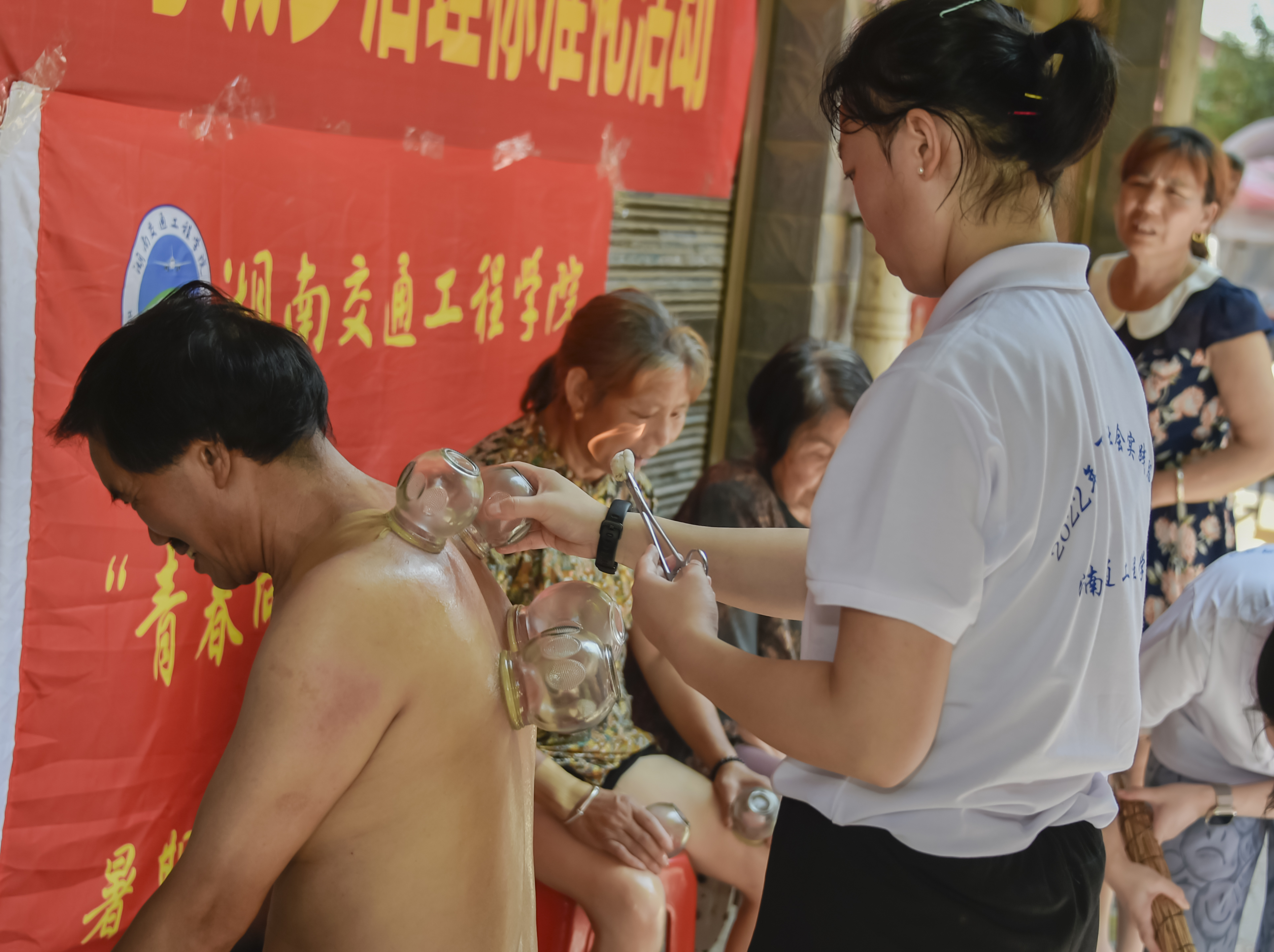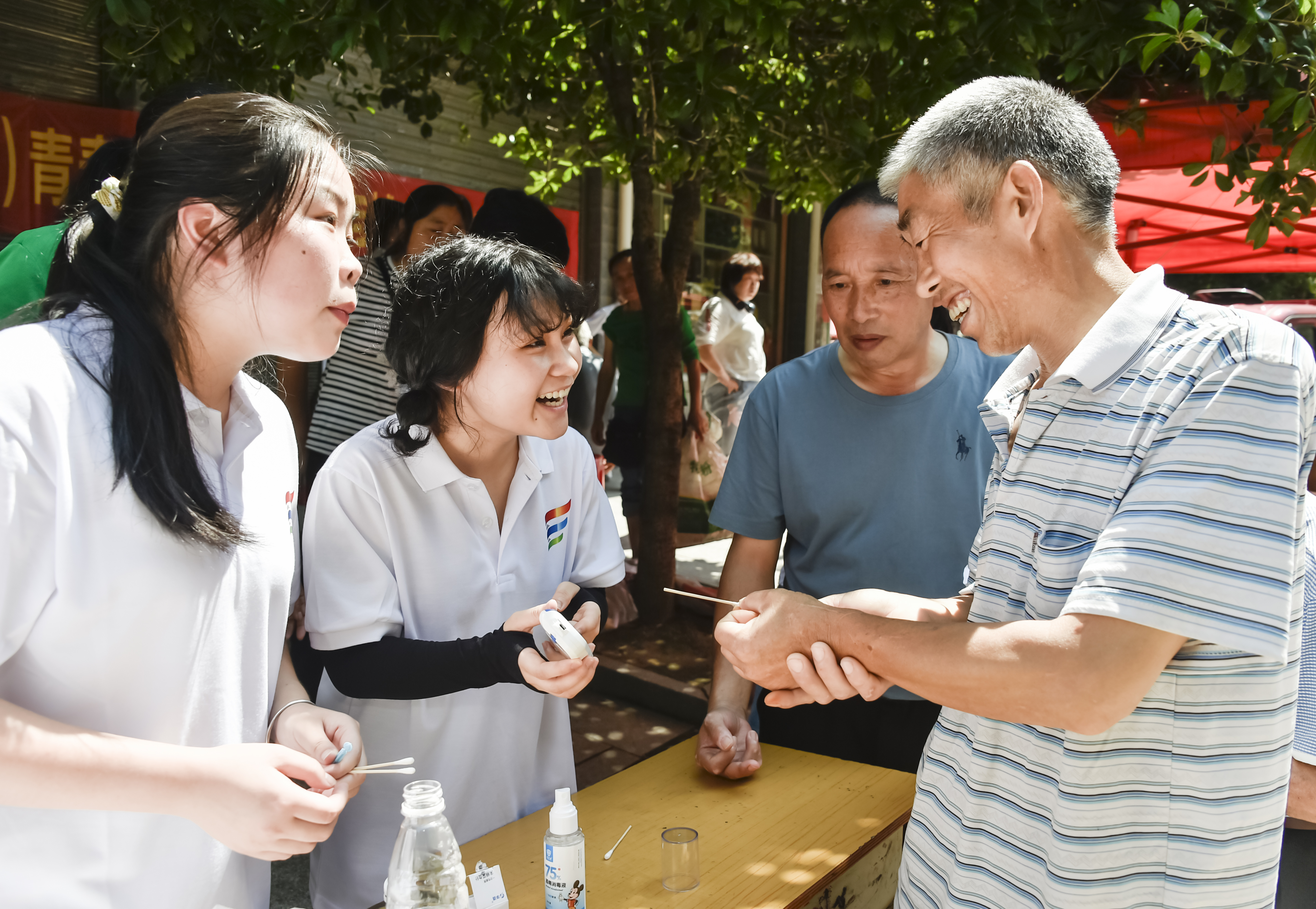 当日,正值歧山集市日期,best365官网社会实践队卫生下乡队员认真为村民量血压,测血糖,拔火罐,做艾灸,检查病情,并详细询问村民的身体状况,耐心细致的分析病情,讲解卫生保健知识、注意事项、饮食安全、合理用药等卫生常识,耐心解答村民关于常见病、多发病的预防诊治及愈后疑难。李先聪一行现场观摩了服务场景,并与志愿者和当村民进行了亲切交谈,勉励志愿者们要珍惜锻炼机会,端正工作态度、磨练品格、学以致用,在社会课堂中受教育、长才干、作贡献,努力成为担当民族复兴大任的时代新人。