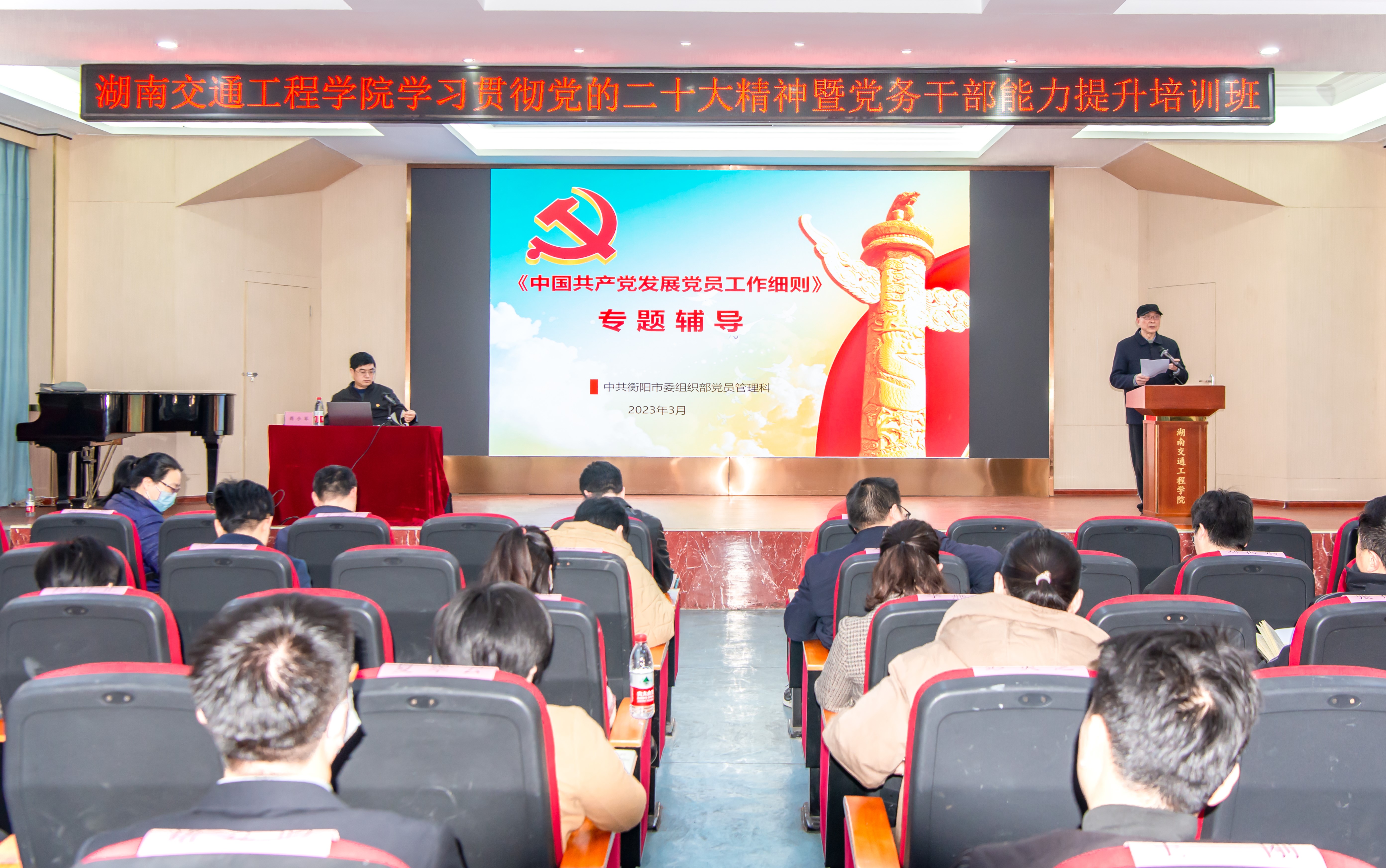 本网讯(记者 赵红深 摄影 奉隆源)为贯彻落实党的二十大精神和上级党委对党员发展工作的部署,进一步规范学校发展党员工作,有效提升基层党务工作队伍的业务能力,切实提高发展党员质量,3月22日下午,学校在航母101会议室召开2023年学校发展党员工作专题培训会,邀请衡阳市委组织部党员管理科科长肖小军作《中国共产党发展党员工作细则》专题辅导。学校党委组织部, 二级学院党总支书记、副书记、专职组织员, 各基层党组织组织委员等负责发展党员工作的党务工作人员参加培训。会议由学校党委副书记李先聪主持。