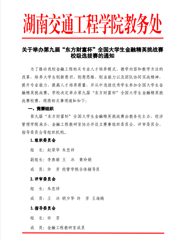 附件:关于举办第九届“东方财富杯”全国大学生金融精英挑战赛 校级选拔赛的通知.pdf