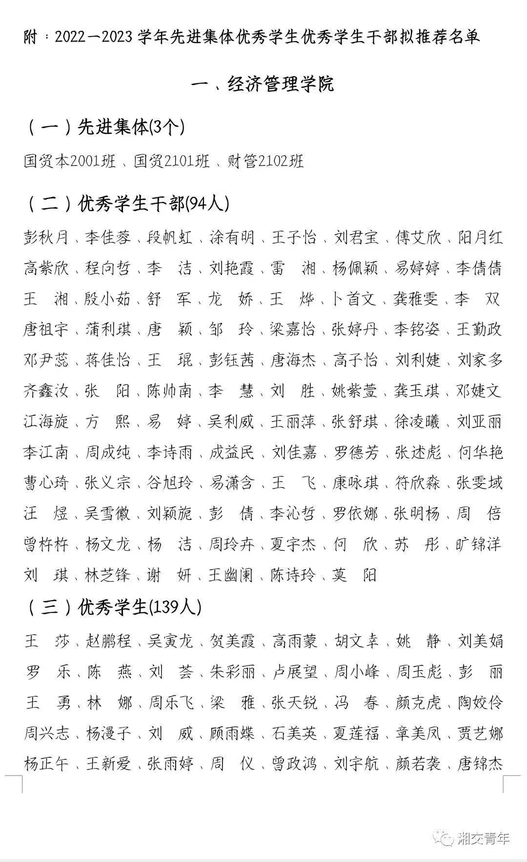 附:2022—2023学年先进集体优秀学生优秀学生干部拟推荐名单。