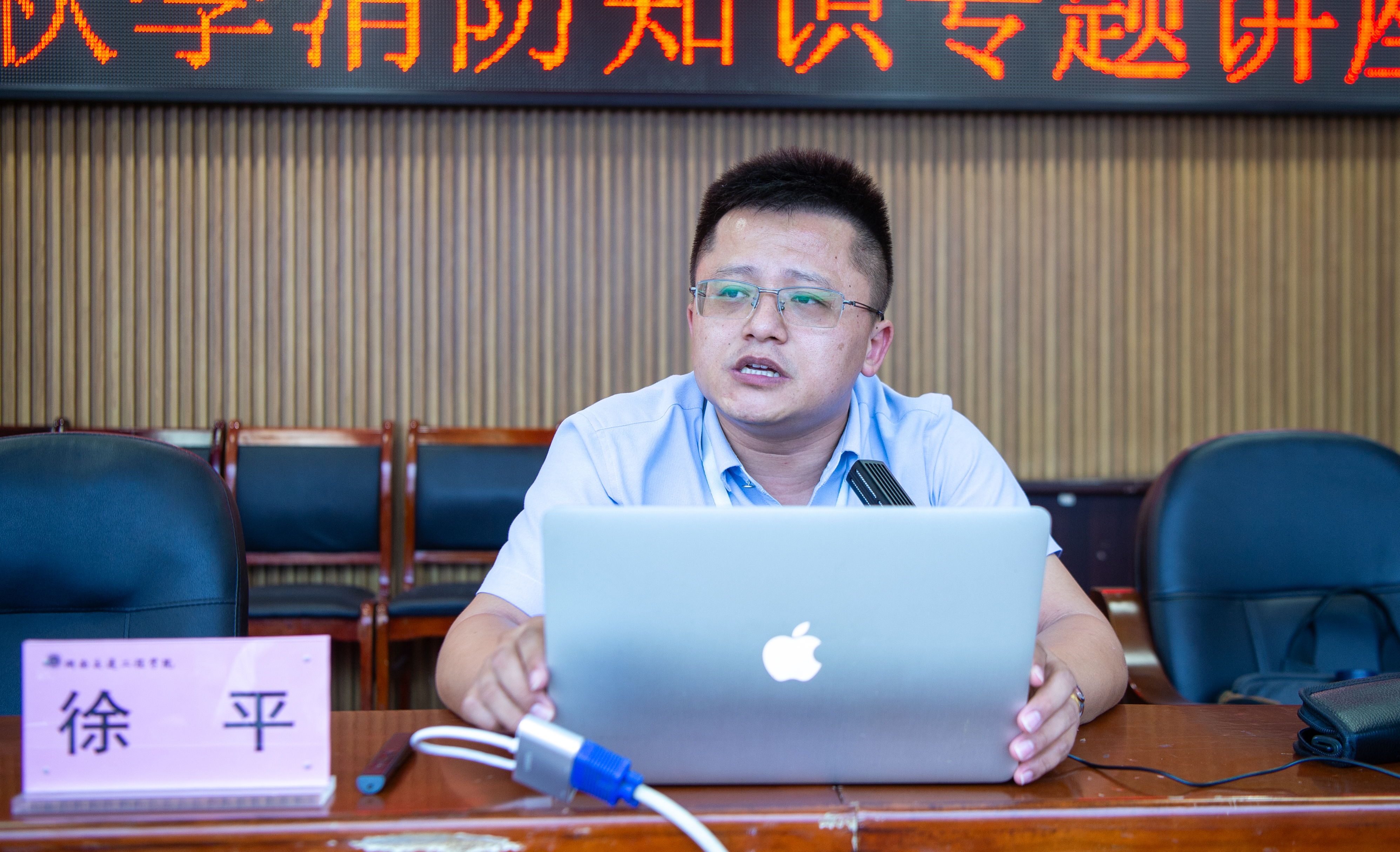 下午3时,学校在体育馆101会议室举办消防安全知识讲座,邀请衡阳市菩安消防安全服务公司徐平教官讲授开学《安全第一课—强化消防意识,共建平安校园课》。徐教官结合典型火灾案例,围绕防火知识、消防急救、逃生自救、灭火知识等方面,为大家详细讲解了日常安全用电防火常识、火灾现场自救和逃生要诀,并着重介绍了灭火器等消防设备的使用方法及灭火器种类。讲座内容重点突出,让师生对常见火灾预防、室内消防器材运用等都有了进一步的了解,提高了消防安全意识。600余名师生参加了讲座。