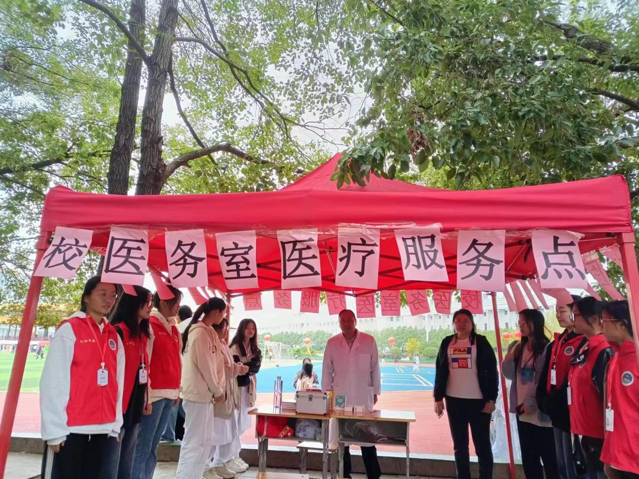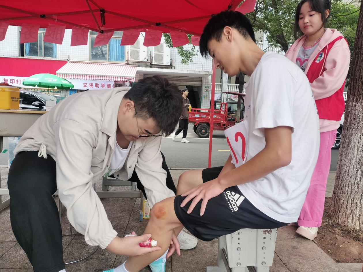 10月20日至21日,best365中国官方网站举行2023年第三届秋季校运会,为保障校运会的顺利进行,确保参赛运动员的竞技安全,医学技术与护理学院的志愿者们与医务室在学校田径场旁开展了爱心小屋活动。