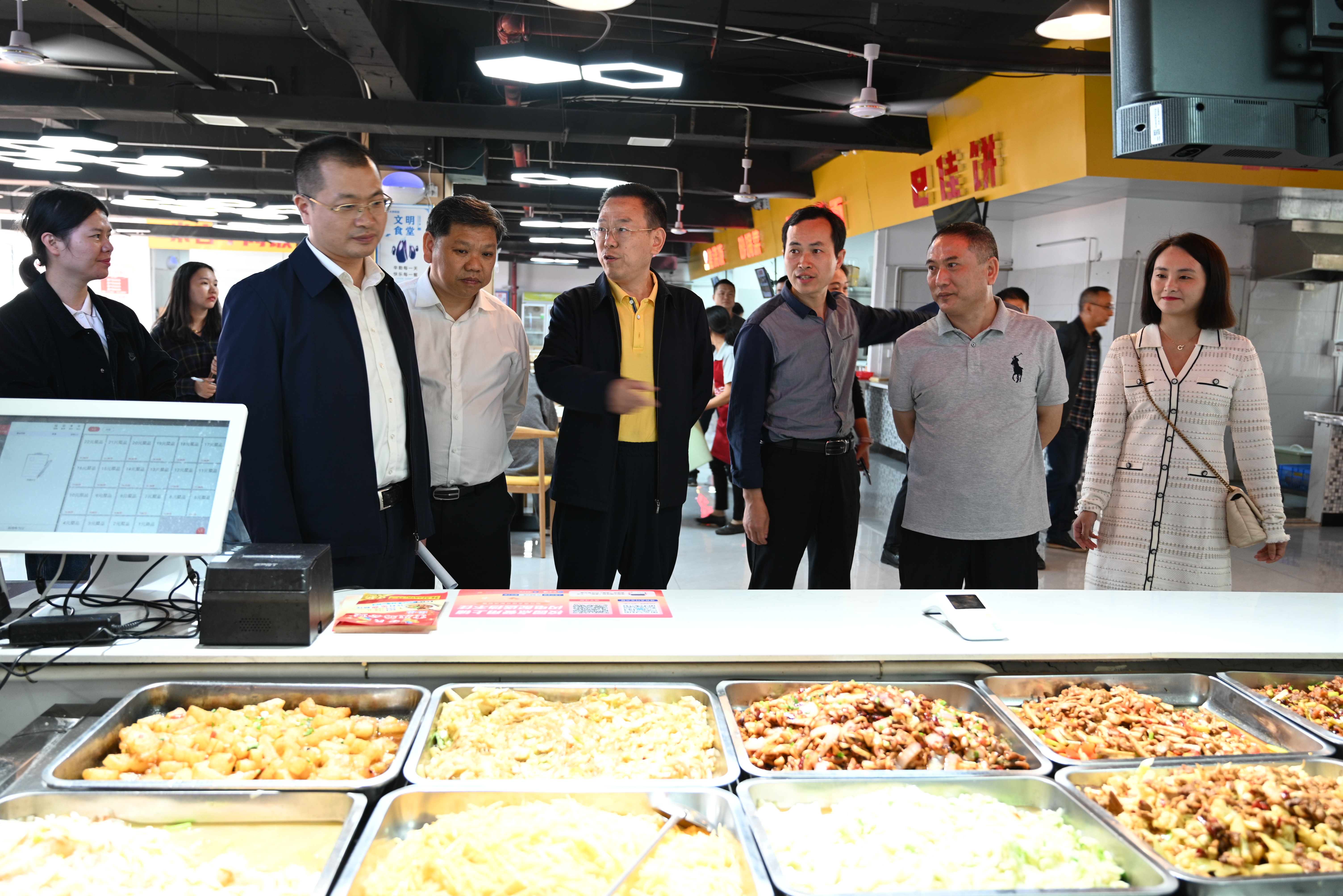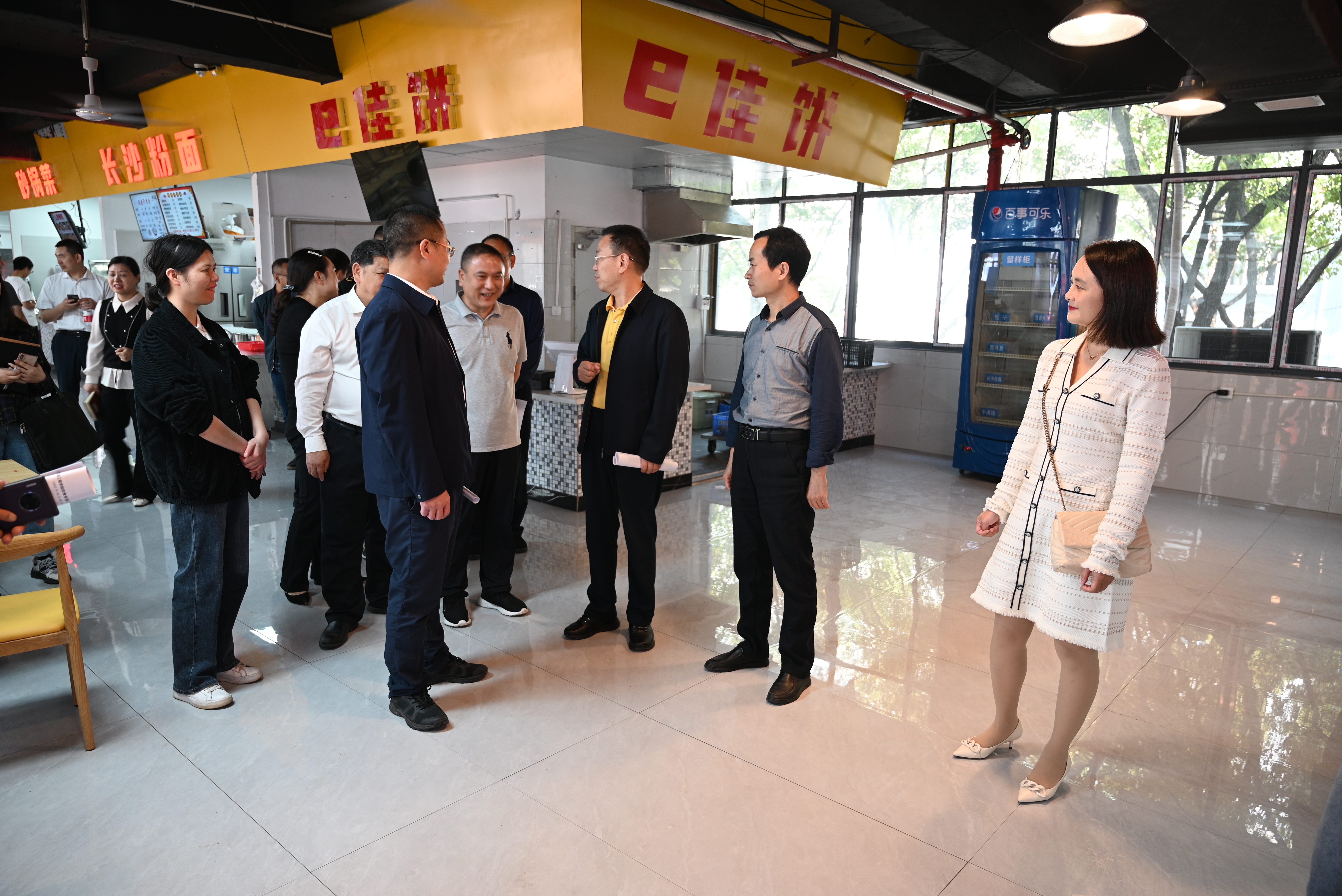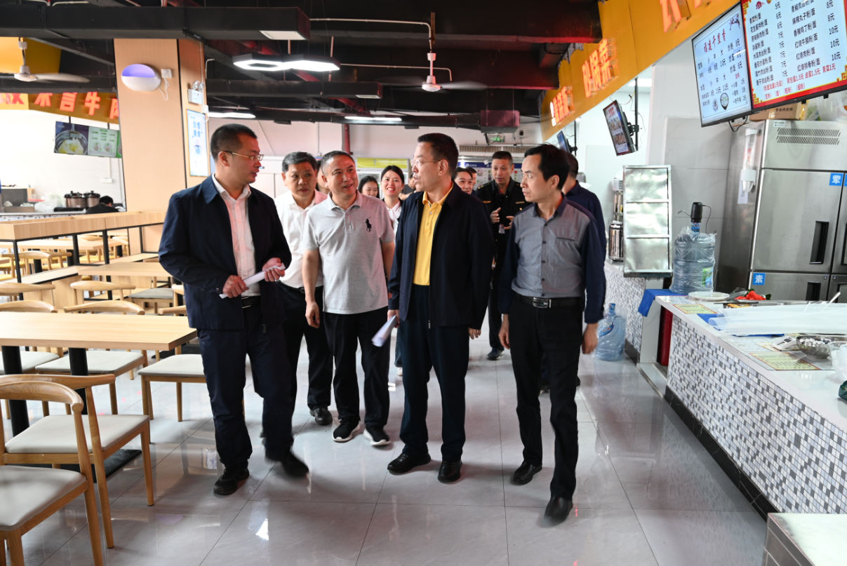 刘正兴一行在best365官网党委书记刘文君、常务副校长彭文武、董事董晔卉等校领导的陪同下,重点查看了学生一、二食堂、创莲餐厅。刘正兴详细查看食堂食品安全管理、责任落实、原料采购、清洗消毒、留样保存等情况,并深入后厨现场、配送中心生产间,通过现场询问、翻阅台账、听取汇报、实地查看等方式,向食堂负责人详细了解场所环境卫生、证照信息、进货查验、消杀记录、食品安全总监和食品安全员配备以及“日管控、周排查、月调度”等制度的落实情况。