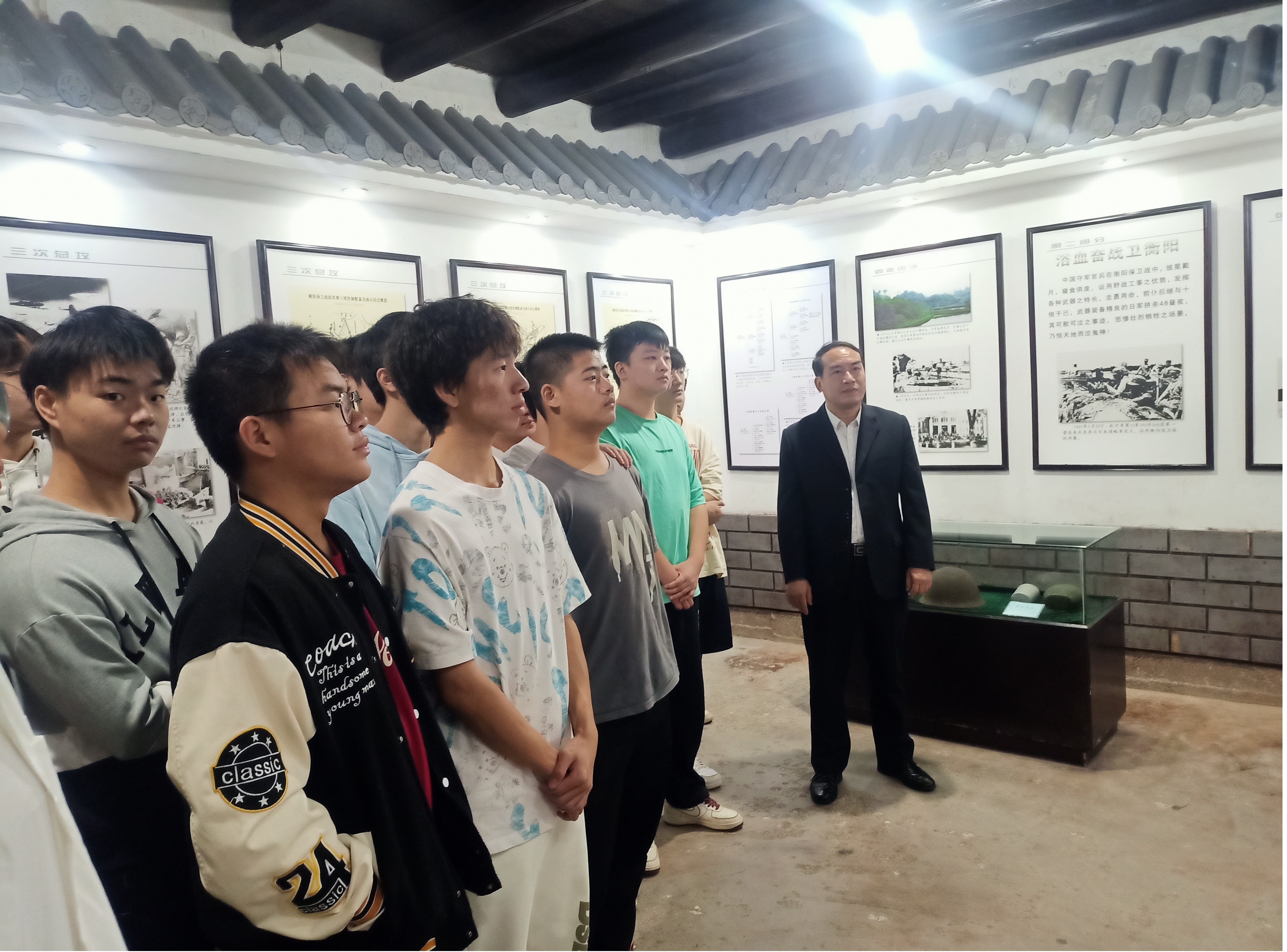 纪念馆内,一幅幅珍贵的历史照片、一件件饱含热血故事的实物、一部部呈现硝烟岁月不屈史诗的影像,仿佛把在场所有的同学们带回那段战火纷飞的峥嵘岁月,让大家对当年发生在衡阳这片红色沃土的英雄事迹有了更加清晰的认识,对前辈们为追求民族解放、谋求人民幸福而勇往直前、前赴后继、浴血奋战的精神有了更加深刻的理解。