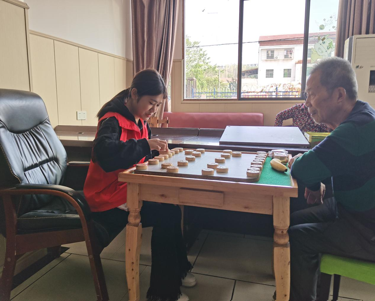 在敬老院,老师和学生们与老人亲切地交谈,向大家宣讲关于养生的知识,同时还老人们修剪指甲、捶背按摩、下象棋、一起唱红歌、跳舞,帮助老人打扫卫生……志愿者们与老人融洽相处真情流露敬老院的老人对志愿者的爱心善举表示感谢,同时也被志愿者的暖心热情深深感动着。