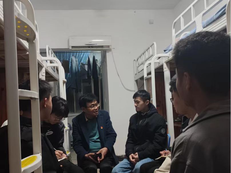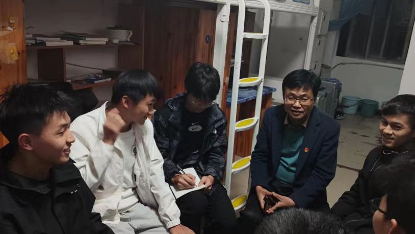 11月19日晚上,机电工程学院党总支书记罗斐来到九栋、十八栋宿舍看望大一新生、大四考研生,实地察看新生、考研生学习、生活近况,为学生送去关怀和温暖。
