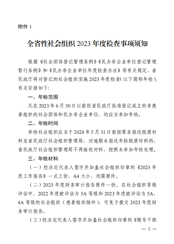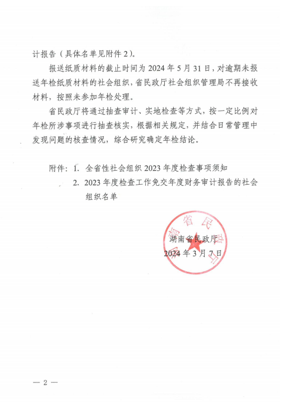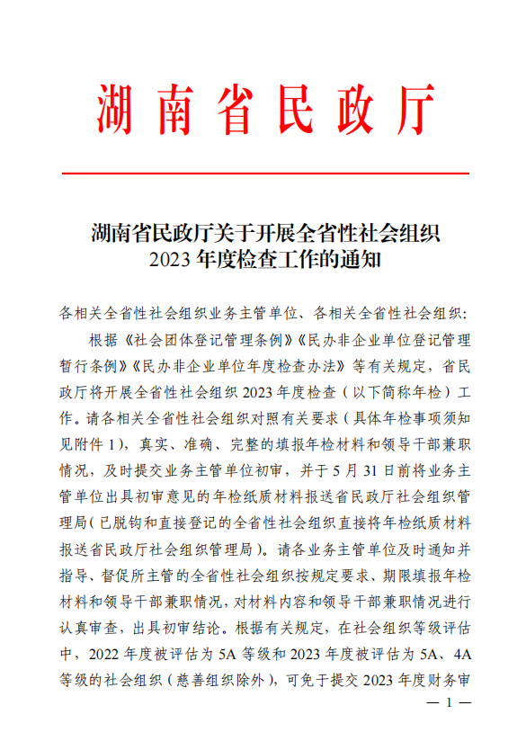 湖南省民政厅关于开展全省性社会组织 2023 年度检查工作的通知