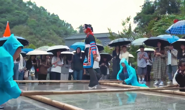 在天堂山广场,师生们跟着瑶乡帅哥靓妹跳起了竹杆舞。随着“开、合、开、合、开开合”明快的节奏,大家的热情一再高涨。瑶乡老师一会把现代歌曲元素融入竹竿舞,引起同学们阵阵喝彩;一会又将古典舞蹈融汇入竹竿舞,古色古香,让人叹为观止。大家在尽情挥洒青春活力的同时,不仅学习了瑶族歌舞和鼓点韵律,感受了竹竿与舞蹈的结合,亲身体会到击鼓的快感;而且通过民俗传承老师的讲解和教学,在“跳竹竿”中亲身感受了集体合作与传统游戏的魅力。