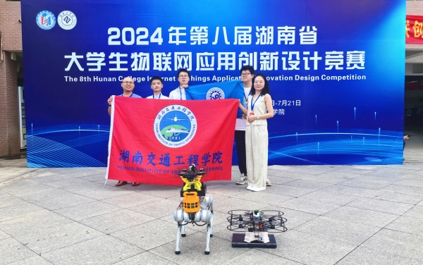 本网讯(通讯员 陈伟明)8月19日,由教育部计算机专业教学指导委员会发起、全国高等学校计算机教育研究会主办的2024全国大学生物联网设计竞赛(华为杯)华中及西南分赛区决赛在贵州大学落下帷幕。best365官网“巡逻卫士·飞犬联合”代表队,针对环境监测、救援抢险等存在的难以快速精准定位并及时获取全面环境信息的现状,融合无人机高空全视角和快速移动能力、仿生机器狗强大越野能力及近距离定点观测优势,设计开发了一款物联网创意作品。通过2024年第八届湖南省大学生物联网应用创新设计竞赛首次晋级国赛,经过答辩和作品演示两个环节的激烈角逐,在强校云集的决赛中,突出重围最终斩获一等奖。