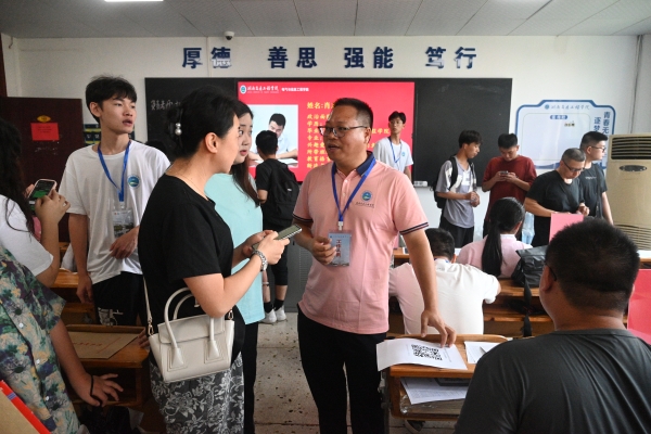 董事长刘福生、执行校长刘杰、名誉校长刘平娥、常务副校长彭文武、党委副书记冯良贵纪委书记刘毅、副校长余孟辉等校领导及相关部门负责人先后到报到现场检查迎新工作,向新同学们送上亲切的问候并表示热烈的欢迎。在校大门入口处,校领导询问保卫处负责人新生报到车辆引导和交通秩序维护,确保校园安全;在视察各个学院的迎新展台工作情况时,听取各学院负责人与学生志愿者对迎新工作的介绍,提出相关工作建议,并对现场工作人员及志愿者致以慰问。