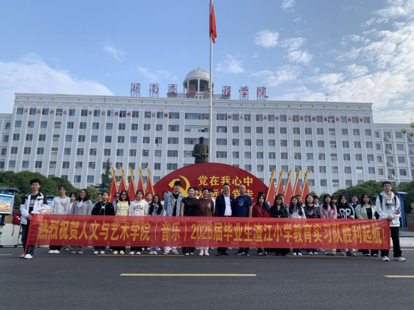 本网讯(通讯员 摄影 曾冰岩)为了给学生提供更加优质的实习平台,实现高质量实践教学,我院结合人才培养目标和毕业要求,主动对接帮扶对口学校衡阳县渣江小学。10月9日上午8:00,我院音乐专业2021级31名学生启程赴渣江小学实习。学院对实习工作高度重视,制定了全面的实习计划和具体实施办法,选派经验丰富、业务素质高且富有责任心的教师担任实习指导教师,召开专门会议,对实习工作进行周密部署,对指导教师提出具体工作要求。院长石峥嵘、总支书记刘敏芝、副书记何文华以及辅导员为31名实习生送行,为他们鼓劲!