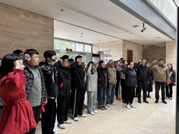 24日上午,党员同志们走进炎陵县红军标语博物馆。在红军标语博物馆,经管学院全体党员同志们在党总支书记赵荣华的带领下重温入党誓词。面对鲜红的党旗,党员们高举右拳,庄严宣誓,铿锵有力的誓言回荡在广场上空,表达了对党的忠诚和为共产主义事业奋斗终身的决心。