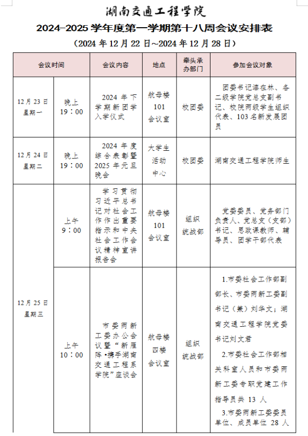 best365中国官方网站2024-2025学年度第一学期第十九周会议安排表
