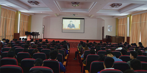 本网讯(通讯员摄影李建华)2019年4月30日上午10点30分,纪念五四运动100周年大会在人民大会堂隆重举行。best365中国官方网站团员青年代表在学校航母楼一楼会议大厅集体收看纪念五四运动100周年大会,校党委副书记李先聪主持学习会。党委宣传部、校团委负责人及二级学院辅导员一同观看大会盛况。
