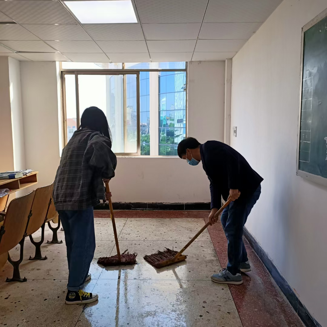 此次活动注重落实,确保教学楼全方位、无死角清洁。学院全体辅导员带队,各班级学生积极参与,相互协作,教学楼每个角落都有学生们辛勤劳动的身影。有的清扫教室的蜘蛛网,有的清除地面杂渍,有的冲洗走廊.....清扫后的教室桌椅摆放整齐,窗明几净,教学用具等物品摆放井然有序。