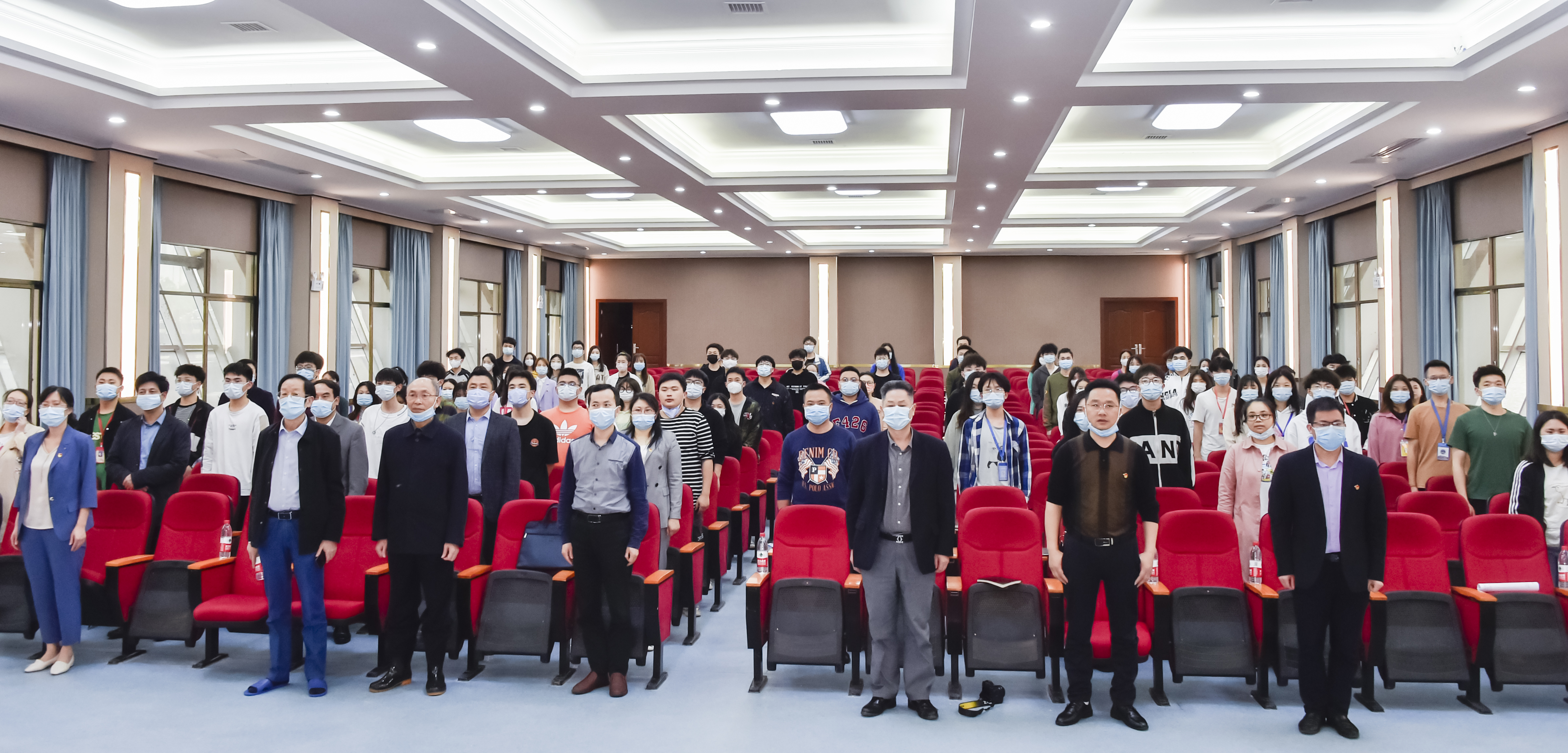 党委书记刘文君、副书记李先聪,党政办、宣传部、学生工作部、教师工作部、组织统战部、校团委等部门负责人,马克思主义学院党支部书记,各二级学院正副书记和团员代表 100 余人参加了航母楼101室主会场的收看。大家认真聆听习近平总书记的重要讲话,回顾共青团百年奋斗的光辉历程,展望共青团青春昂扬的光明前景。