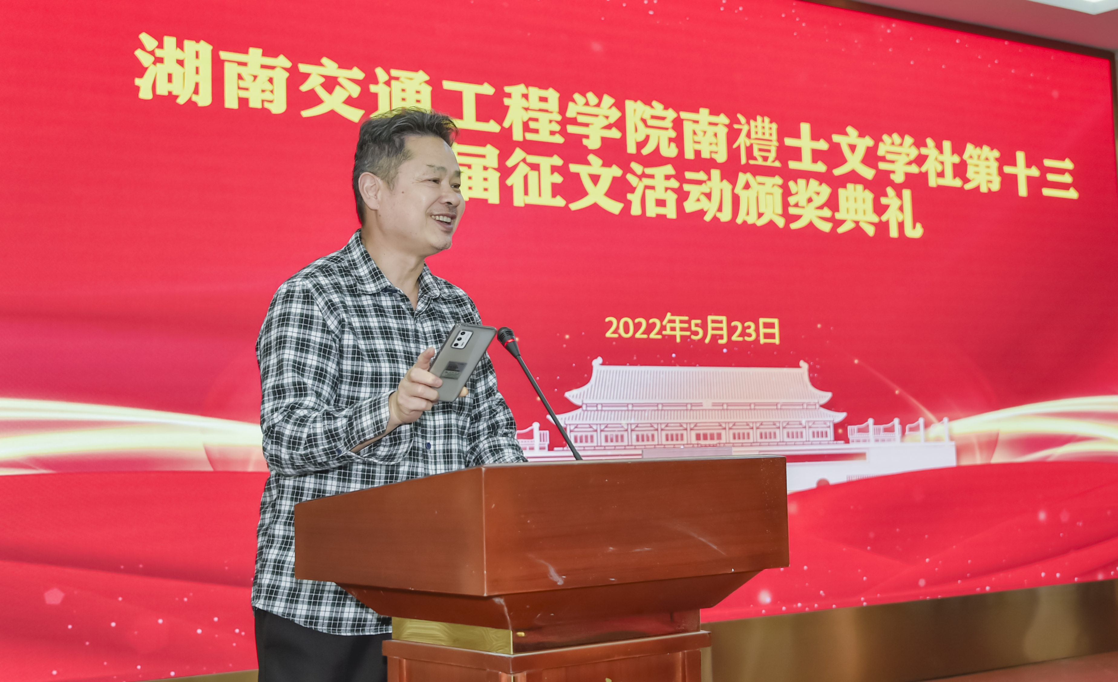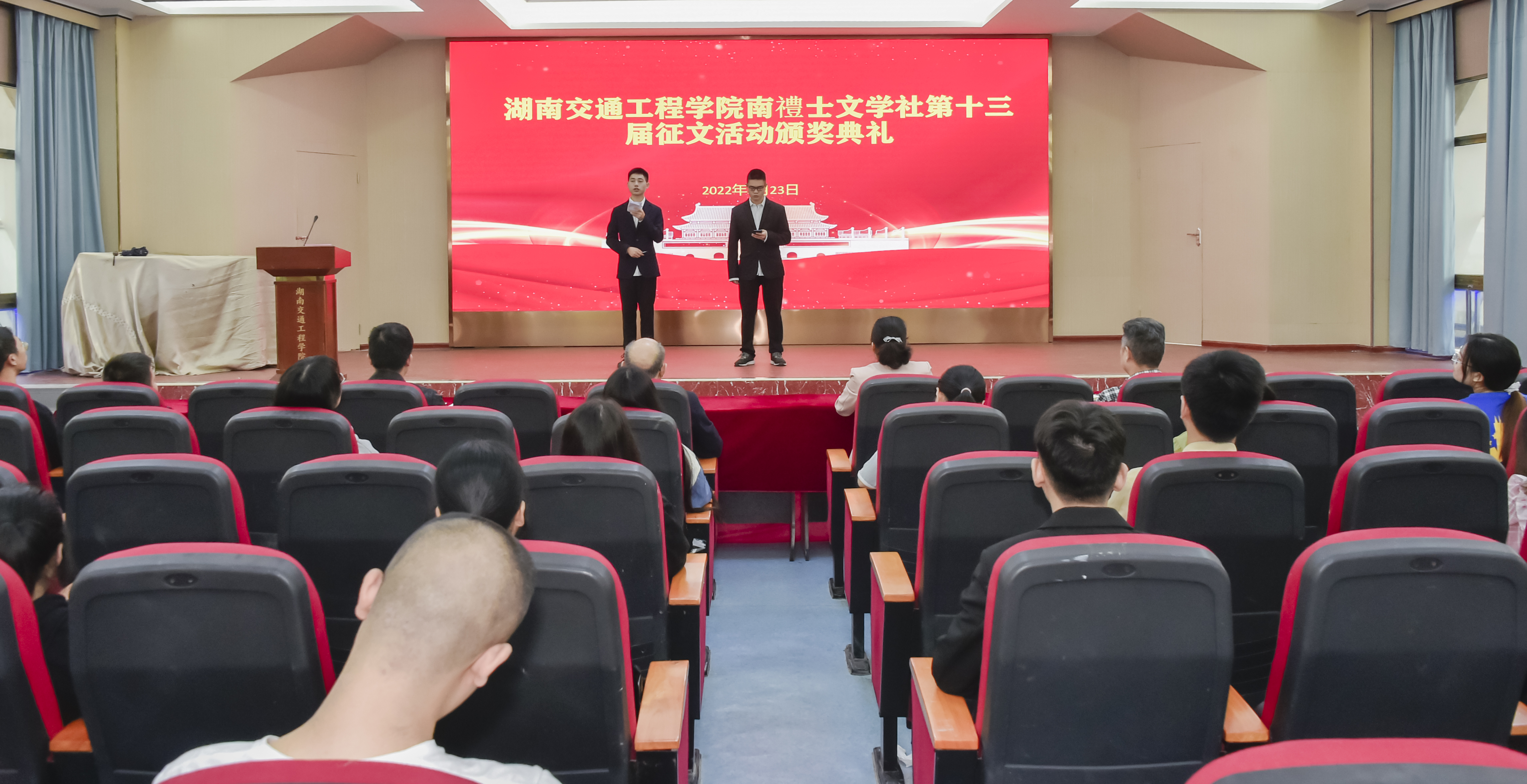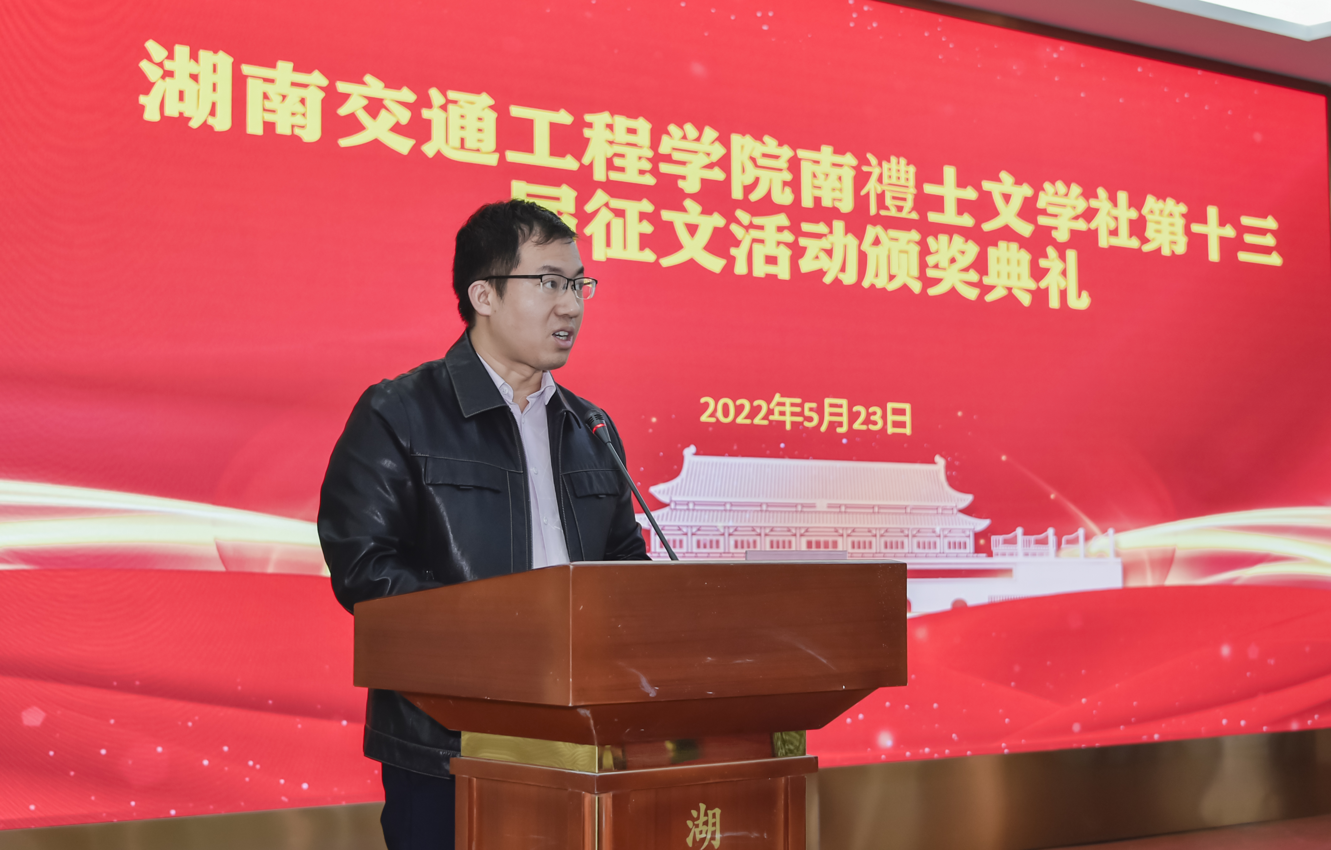 颁奖仪式上,校团委书记漆在林代表举办方对这次征文活动作总结讲话。他首先向获奖同学和大力支持征文比赛的各二级学院表示真诚的感谢!本届征文主题为“假如没有李白”,活动发动广泛,组织有序,得到同学们的积极响应。共收到稿件200余篇,有散文、小说、诗歌等体裁,形式多样,内容丰富,主题鲜明。经评委多轮评选,评出16个奖项。作为主办单位南禮士文学社,从征稿、收稿到审稿、组织评选,大家付出了辛勤的劳动和汗水。他希望以这次征文为契机,各学生社团认真总结经验,引导学生们开展有影响、有特色、有创新的社团活动,让社团成员达到自我教育、自我服务、自我管理、自我成长。