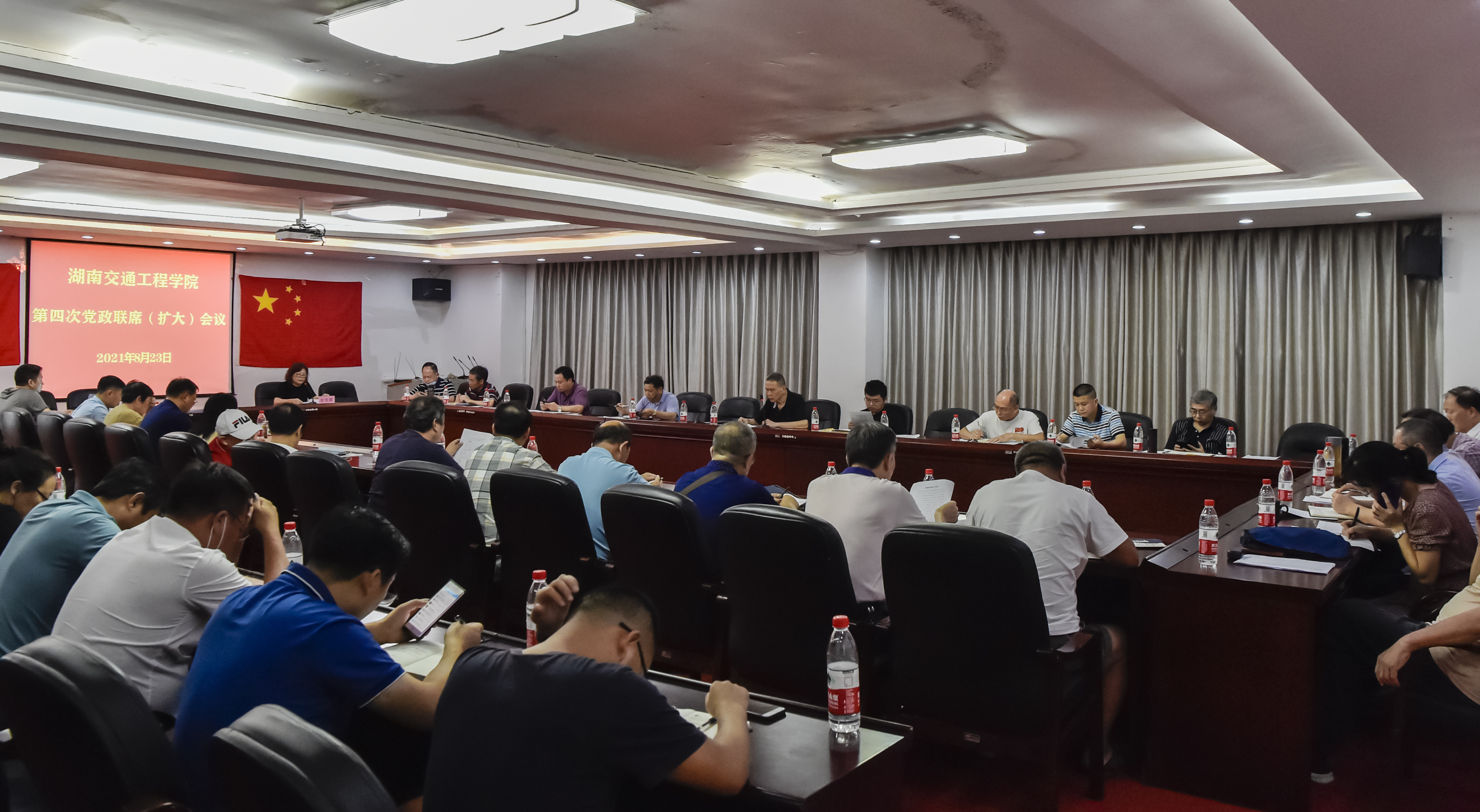 本网讯 8月23日下午,校长陈治亚在体育馆103会议室主持召开第四次党政联席(扩大)会议,部署2021年秋季开学工作。董事会成员、校党政领导出席会议。