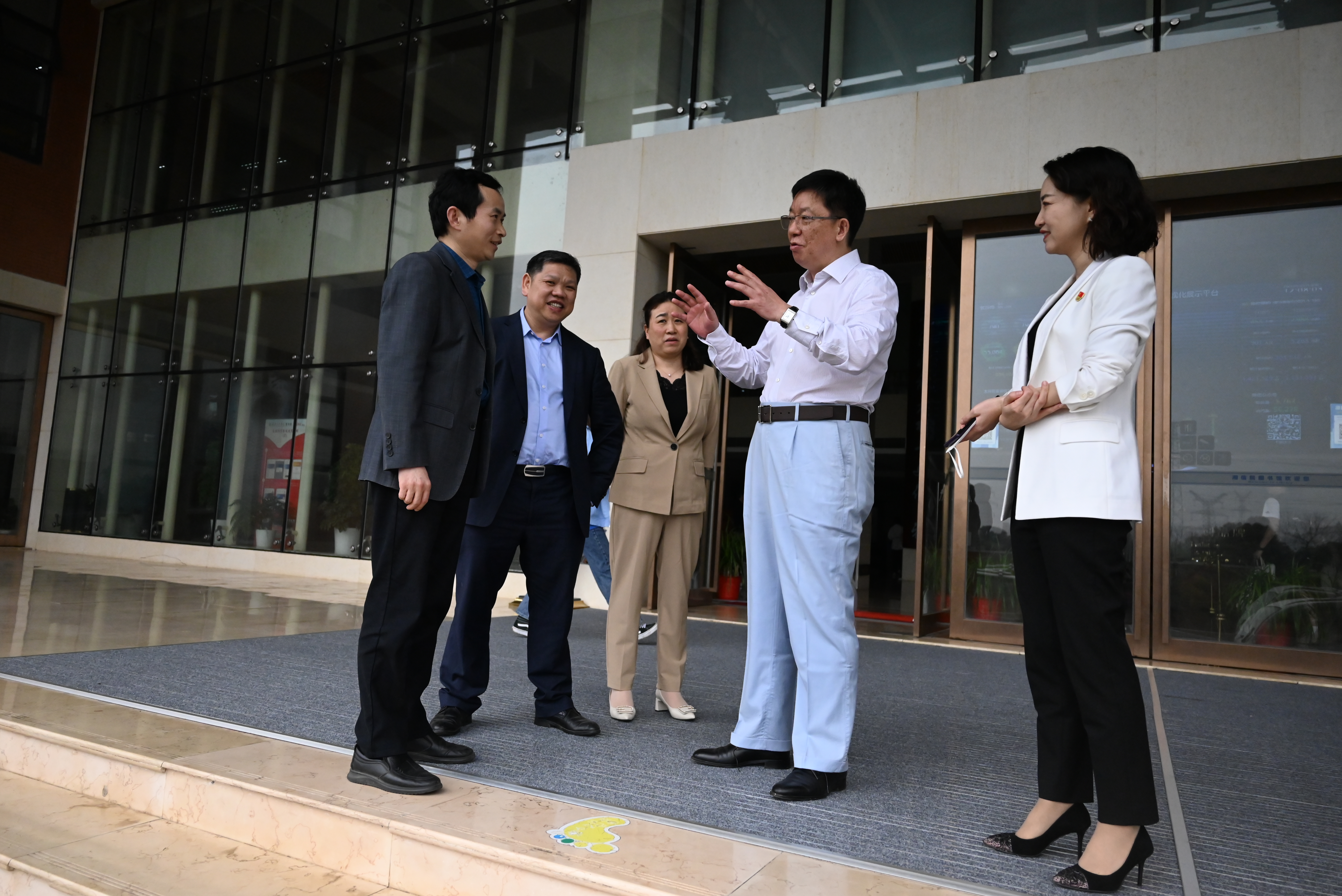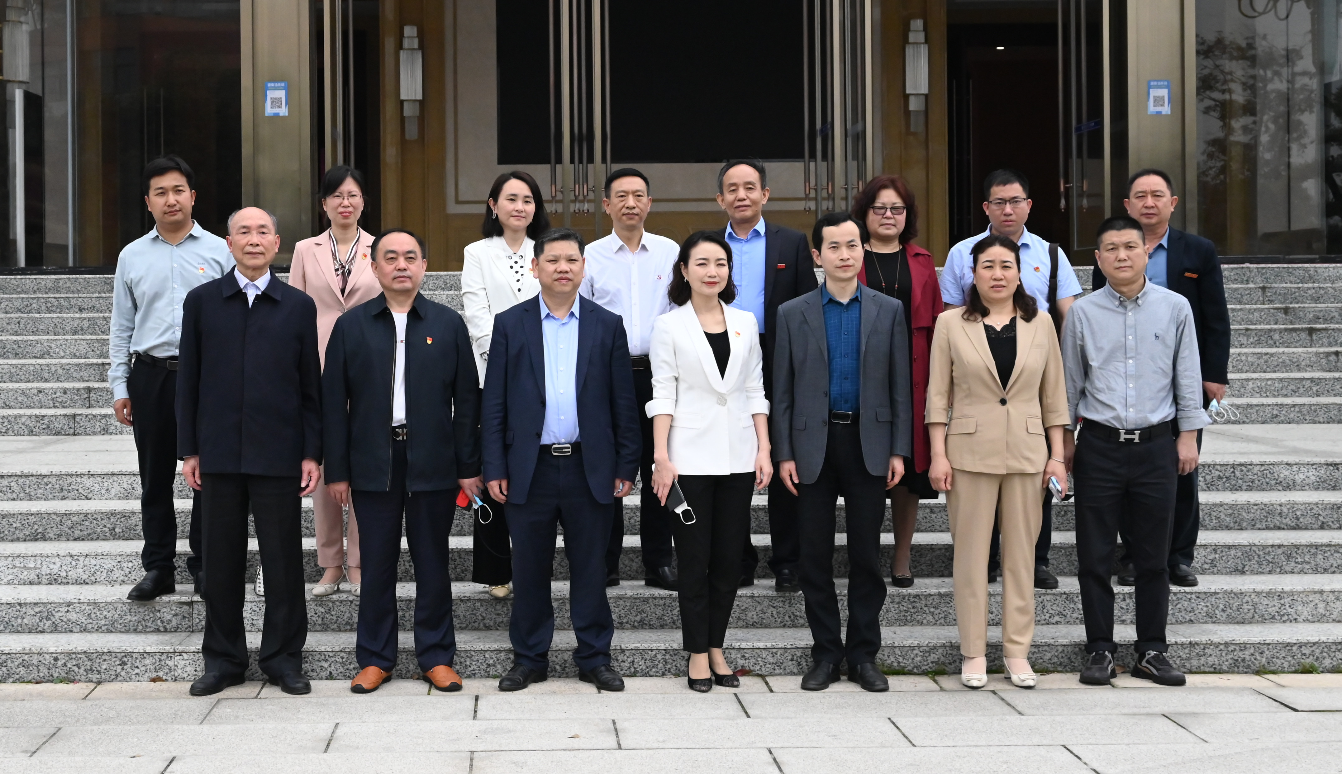 在喻玲娜等陪同下,刘文君一行走访、参观了湖南信息学院兄弟连、体育馆、图书馆、塘湾湖剧院、聚美社区、学生食堂等。大家对信息学院校园整体环境、规划建设、软件硬件设施及浓厚的校园文化给予了高度赞赏。双方人员在图书馆前进行合影留念。