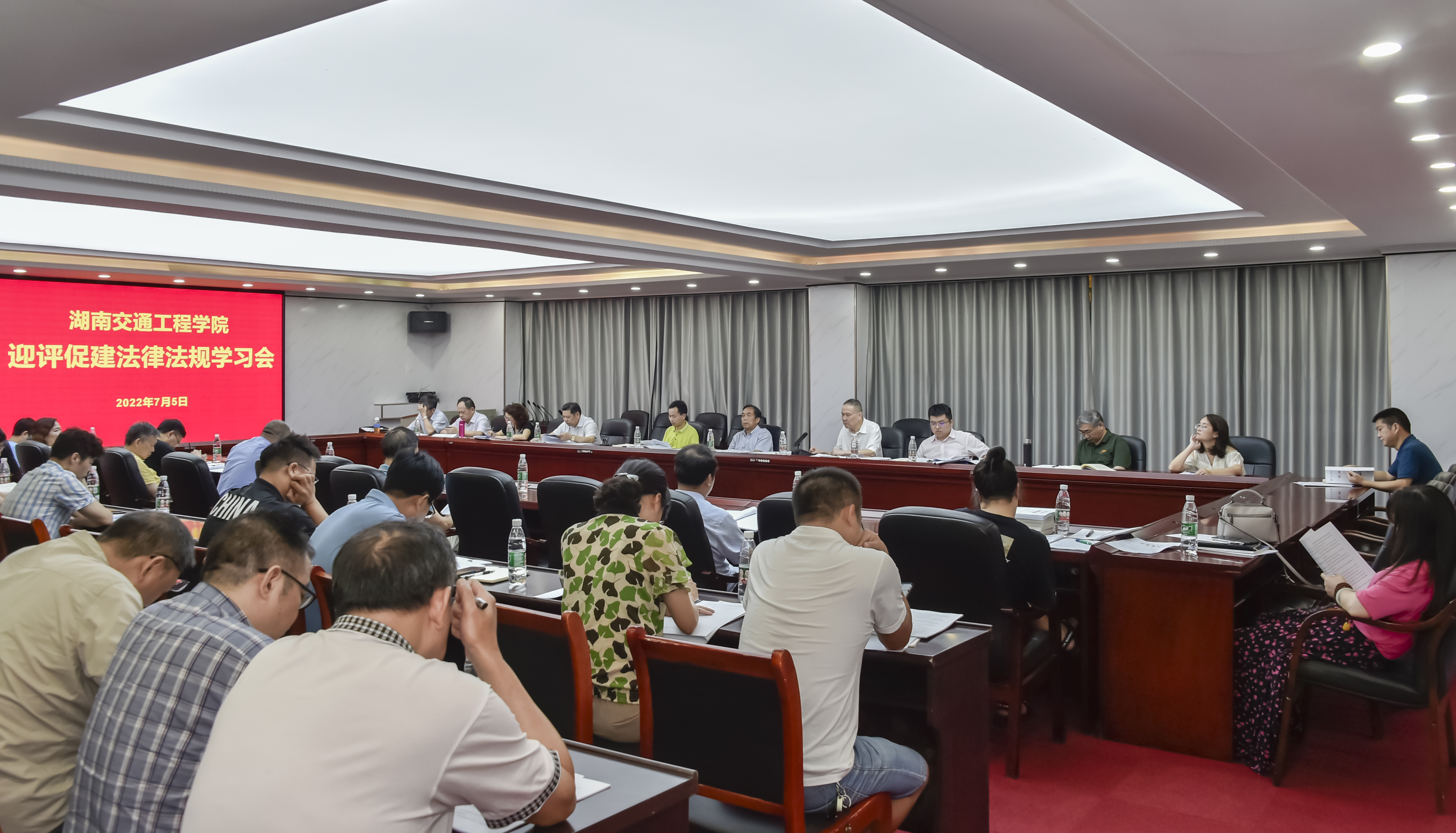 本网讯    7月5日上午,学校在体育馆103会议室召开迎评促建法律法规专题学习会议。通过学习,进一步把握政策的内涵要求和精神实质,对迎评促建等相关工作进行再安排、再部署。全体在校领导和中层干部参加会议。党委书记刘文君主持。