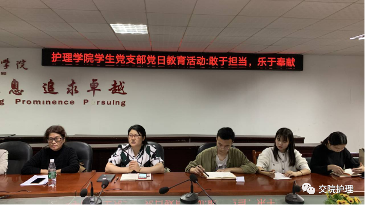 为了进一步提高我院学生党员的综合素质,于2020年11月18日,我院在护理实训楼二楼会议室展开了以“敢于担当,乐于奉献”为主题的学生党支部党日教育活动。参与此次会议的有护理学院党总支书记毛淑群、党总支副书记兼团总支书记肖桂香以及2020年下期发展对象为第31期入党积极分子和部分两会干部。