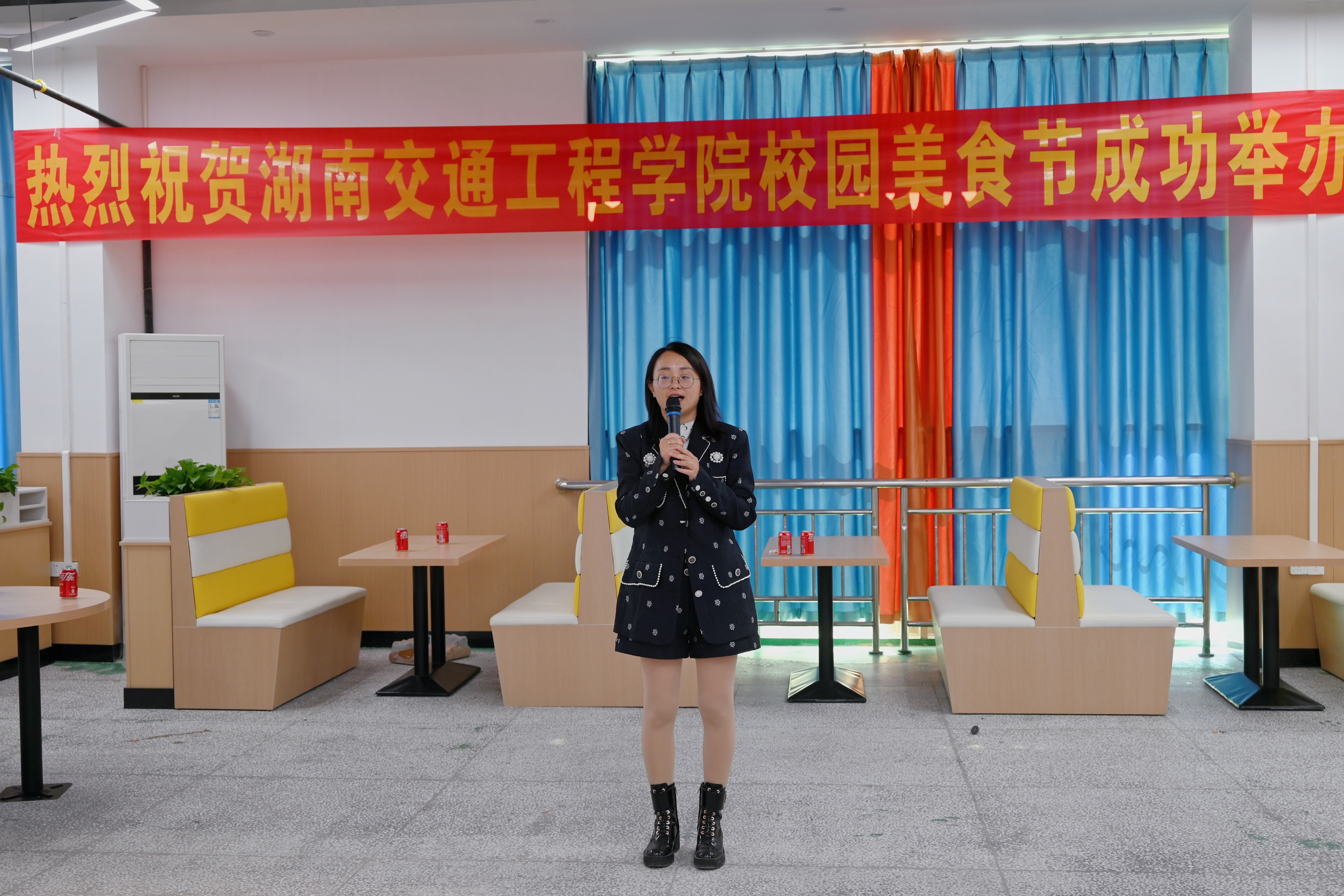 董晔卉发表美食节致辞,“民以食为天”,无论什么时候,烹饪都是人们生活中一抹不可或缺的风景,中国人自古以来追求色、香、味俱全。本届校园美食节,食安会为师生们提供一个以菜融通、展示自我、释放激情的舞台;各食堂将自己的私房菜、拿手菜亮出来,展示新意,显示风格。大家可以大饱眼福,欣赏秀“色”可餐的美食;更会一饱口福,享受缤纷美味,口齿生“香”,回味无穷。我们感受校园生活的红火,我们品味交工院生活的甜美。我们举办这次“校园美食节”,目的就是为了进一步丰富师生的校园文化生活,推动文明食堂建设,塑造良好的校园美食文化,不断提高学校饮食服务质量。以后我们每学期都会举办一次集知识性、趣味性和实践性于一体的校园美食节,让学生在浓厚的饮食文化氛围中体验生活,提高生活技能。