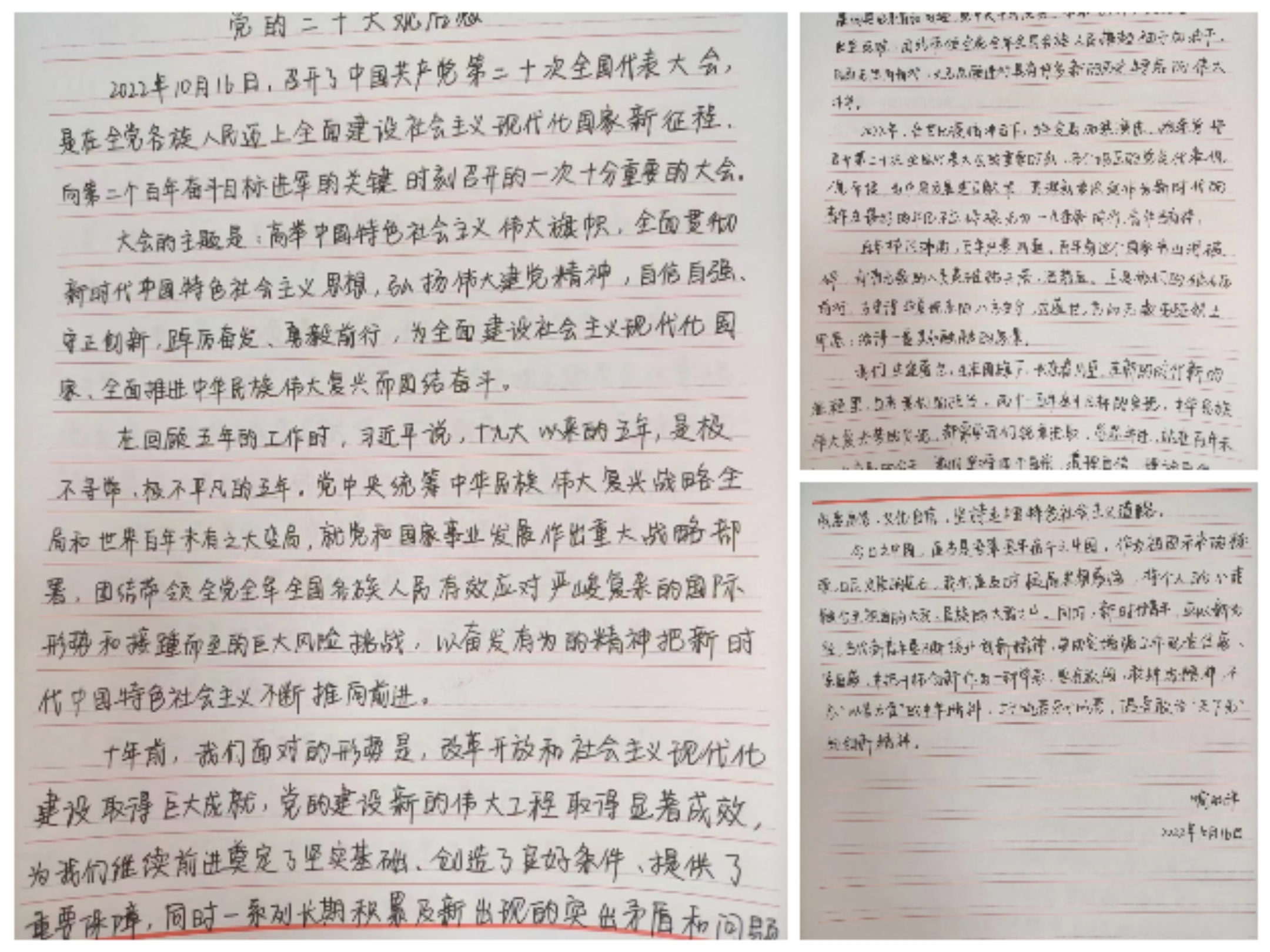 集中收看开幕会结束后,学院当即组织同学抒发自己的想法,广大师生纷纷表达了对党的二十大胜利召开的深刻感悟及要不忘初心,牢记使命,坚定不移跟党走,把课上好,把学院建设好,把二十大报告学习好、研究好、解读好、宣传好,推动二十大精神。