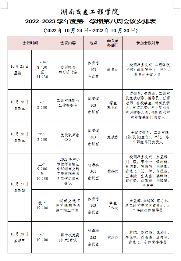 best365中国官方网站2022-2023学年度第一学期第八周会议安排表