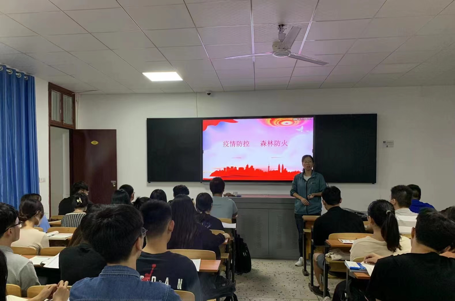 会议结合PPT、视频等形式,首先针对疫情防控、居家安全、心理健康以及如何加强自身的身体素质等方面进行了学习,向全体师生倡议非必要不离校,按疫情防控要求做好相关工作。随后就森林火灾案普及森林防火知识,介绍了引发森林火灾的原因,强调了火灾的危害性,讲解了发现森林火灾时如何正确报警,如何快速扑救初期火灾等消防安全常识,鼓励同学们做“防火宣传员”,落实“三不准”原则,自觉养成良好的防火习惯。