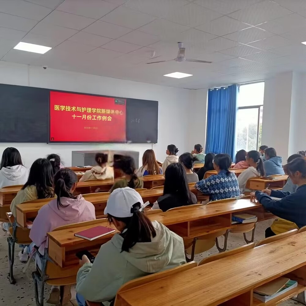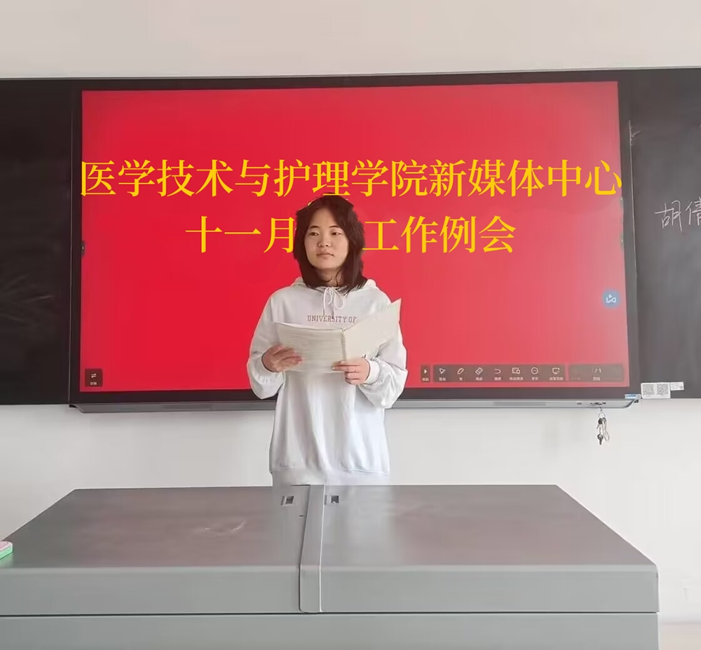 为进一步落实学院新媒体中心各项工作及推动各项宣传工作的顺利开展。11月4日中午,医学技术与护理学院新媒体中心于教学楼105教室召开十一月份工作例会。医护学院党总支书记邓丽,新媒体中心各负责人及在校各班级班宣传委员参加了此次例会。