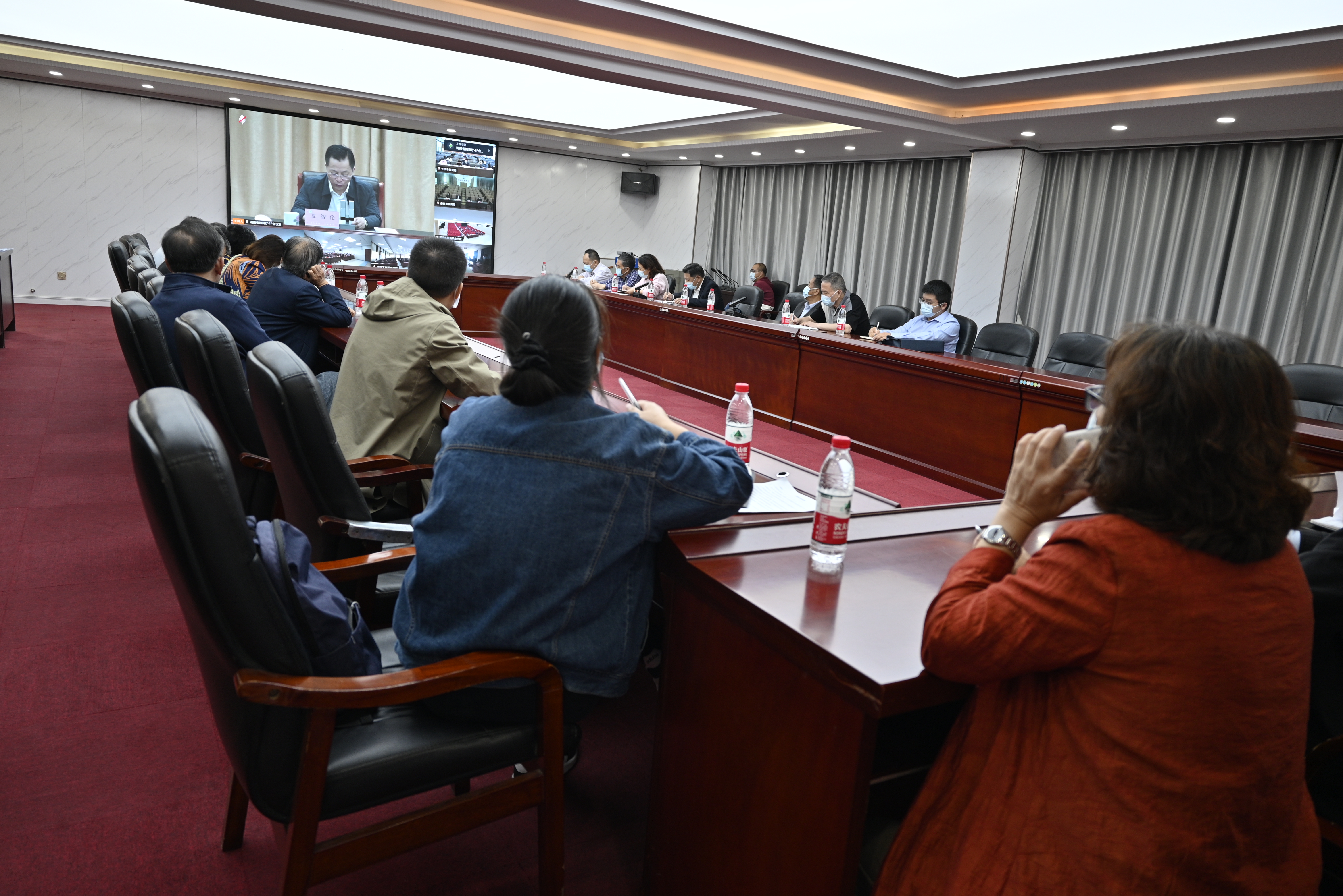 本网讯(通讯员 摄影 赵红深 )11月8日上午,学校在体育馆103会议室集中收看了全省民办高校专项督导工作动员培训视频会。董事长刘福生、校长陈治亚参加收看并作部署讲话,校董事会、党委、校务会班子成员,各处室和二级学院(部)主要负责人,评建办全体成员参会。