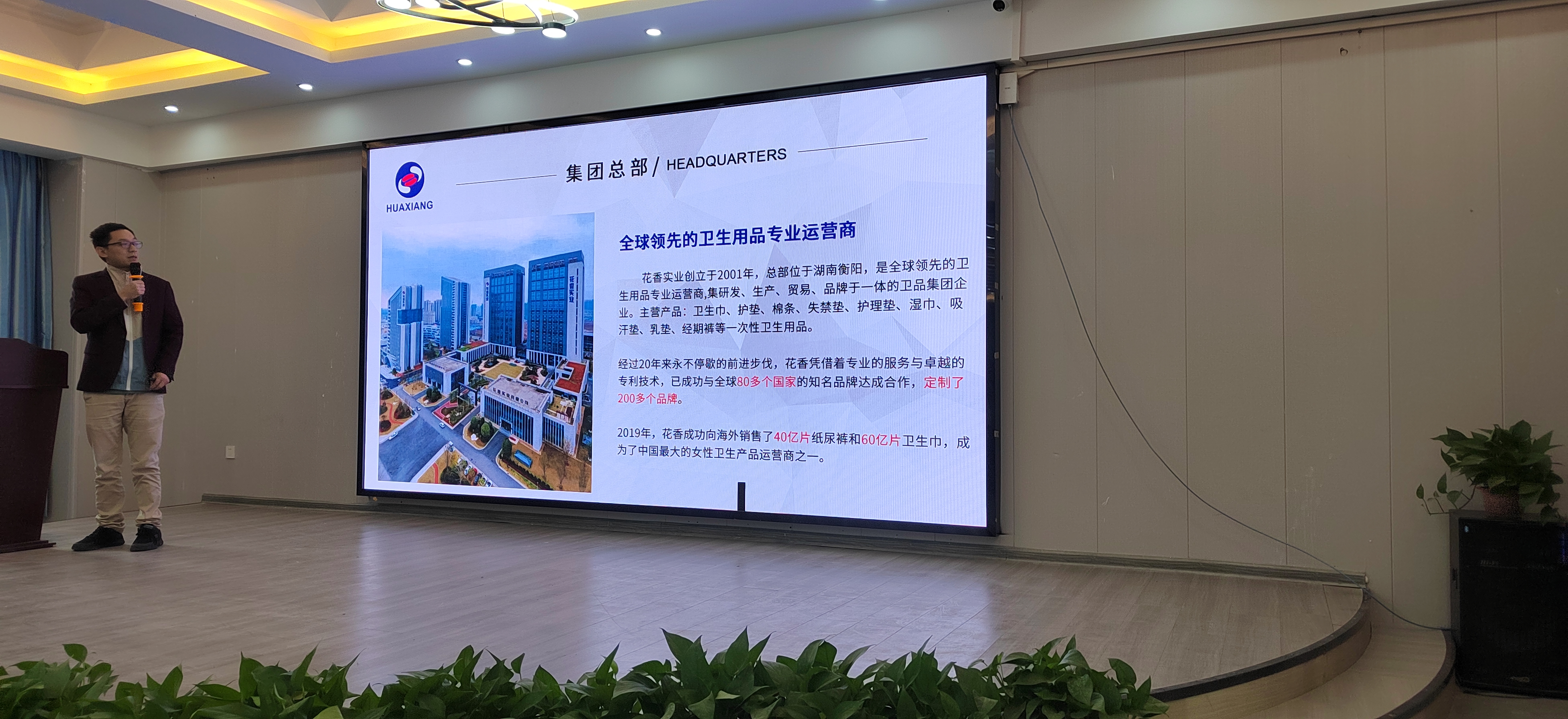 湖南花香集团运营经理在会议中具体介绍了花香集团的产品,以独有的“可全生物降解工艺”为核心技术载体,开发出了可降解卫生巾、湿巾、宝宝纸尿裤等,填补了该行业资源可循环利用的空白,同时也减少白色垃圾对环境的污染,保护地球,走上了一条可持续发展的道路。湖南花香集团初心宗旨是以民族之光打造中华民族引以为傲的知名品牌。湖南花香集团是世界500强信赖的卫生用品生产基地,二十年来不断开拓,不断进取,不断获得荣誉。花香实业引进世界上最先进的生产机器,集结行业顶级研发专家持续研发、持续创新,给消费者品质保证。