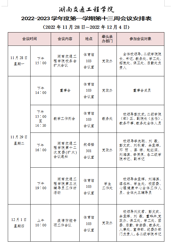 best365中国官方网站2022-2023学年度第一学期第十四周会议安排表