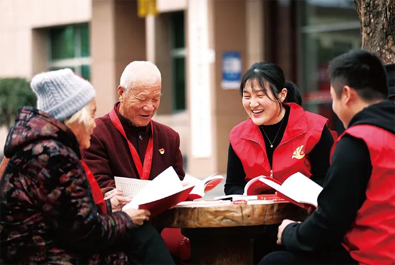 图为2022年11月18日,山东省临沂市郯城县郯城街道“90后”青年党员志愿者与龙泉社区“40后”老党员一起学习党的二十大精神。人民图片 张春雷/摄党的二十大报告,凝聚着党心民心。报告起草工作充分发扬党内民主,践行全过程人民民主,自上而下和自下而上相结合广泛征求意见,集中全党智慧,反映人民意愿。2022年1月27日,党中央向各地区各部门发出《关于对党的二十大报告议题征求意见的通知》,决定就党的二十大报告议题在党内一定范围组织讨论,广泛征求意见,同时,通过一定方式征求部分党外人士意见和建议。4月15日至5月16日,党的二十大相关工作网络征求意见活动开展。这是我们党历史上第一次将党的全国代表大会相关工作面向全党全社会公开征求意见。6月9日、8月18日、8月23日、8月26日、8月29日,习近平总书记先后在成都、沈阳、北京主持召开5场党的二十大报告起草和党章修改工作征求意见座谈会,听取31个省区市党政主要负责同志、解放军各大单位和中央军委机关有关部门主要负责同志提出的修改意见和建议。党的二十大召开期间,根据各代表团和列席人员讨论反馈的意见,对报告稿又作出了修改……报告起草过程,真正成为坚持走群众路线、充分发扬民主、集中全党全国人民智慧的过程,成为深入调查研究、总结实践经验的过程,成为充分解放思想、广泛凝聚共识的过程。