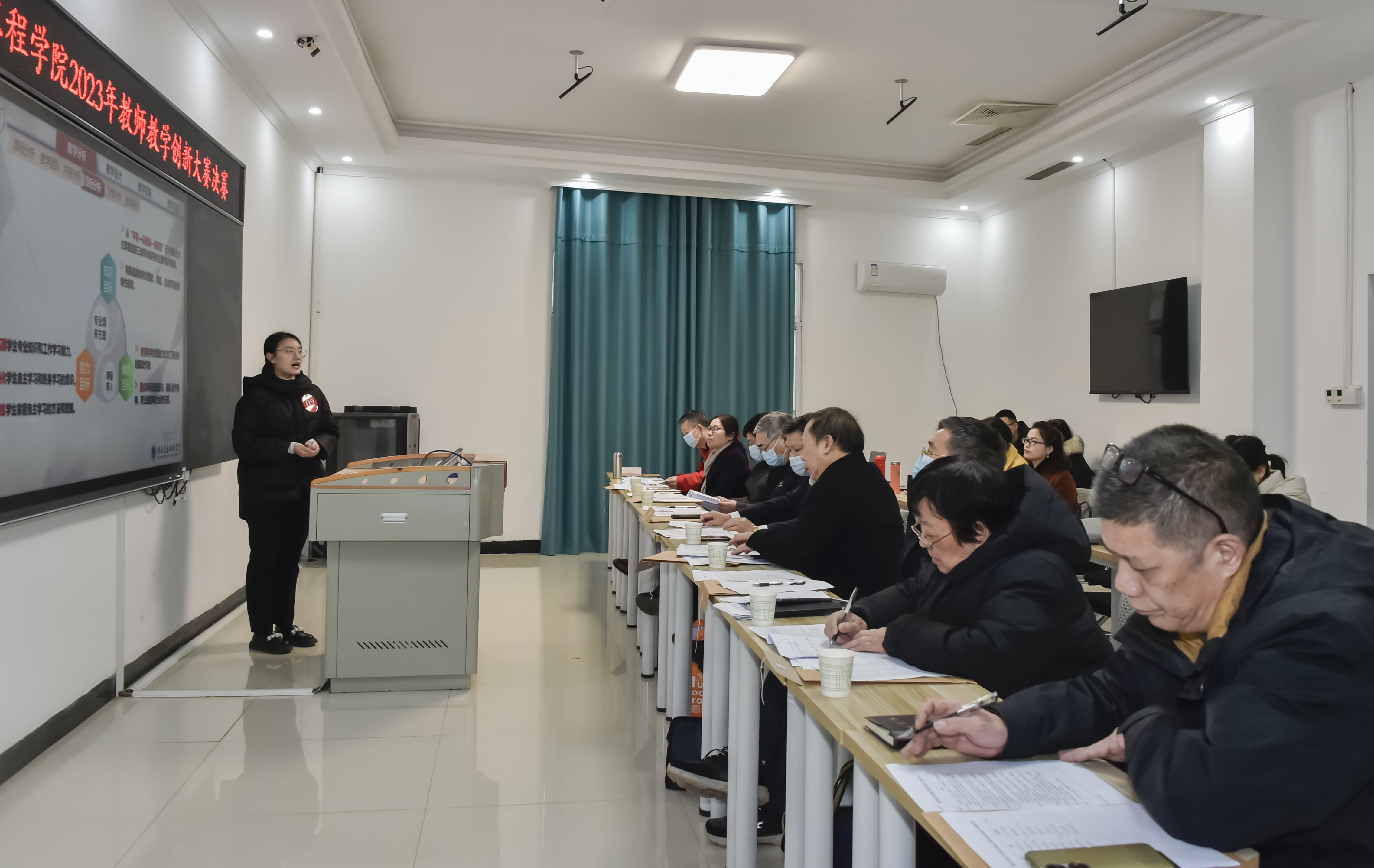 本网讯(通讯员 赵红深 王海娥 张丹丹 摄影 李建华 )12月7日上午,学校在航母楼301室举行2023年教师教学创新大赛校级决赛暨省赛选拔赛。名誉校长刘平娥、常务副校长彭文武, 副校长樊晓平、刘初生,教务处处长曹中一、副处长王海娥,马克思主义学院院长杨波、公共基础课部主任周克省、教师发展中心副主任吴广平担任评委。比赛由党政办副主任霍志玮担任主持人。
