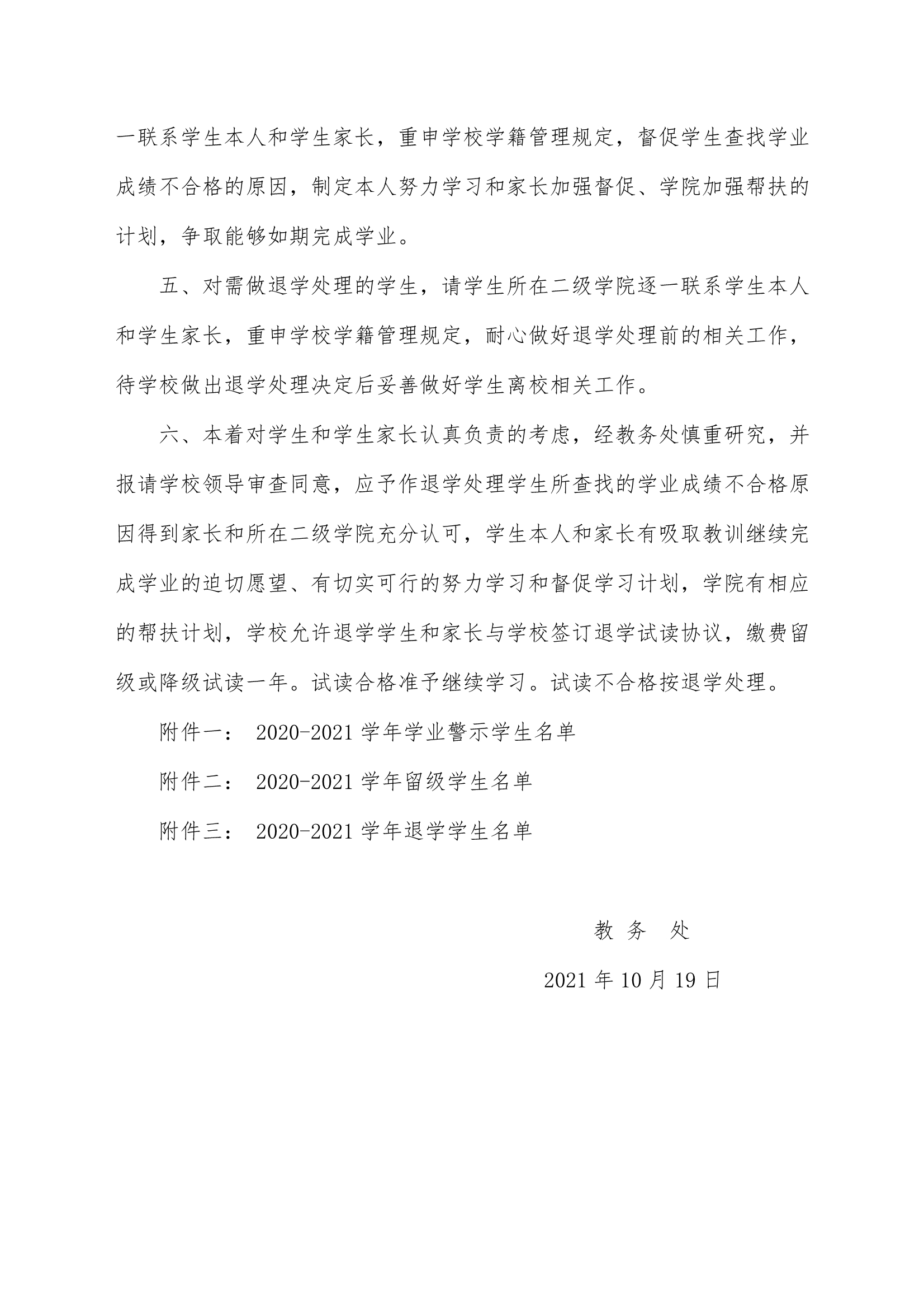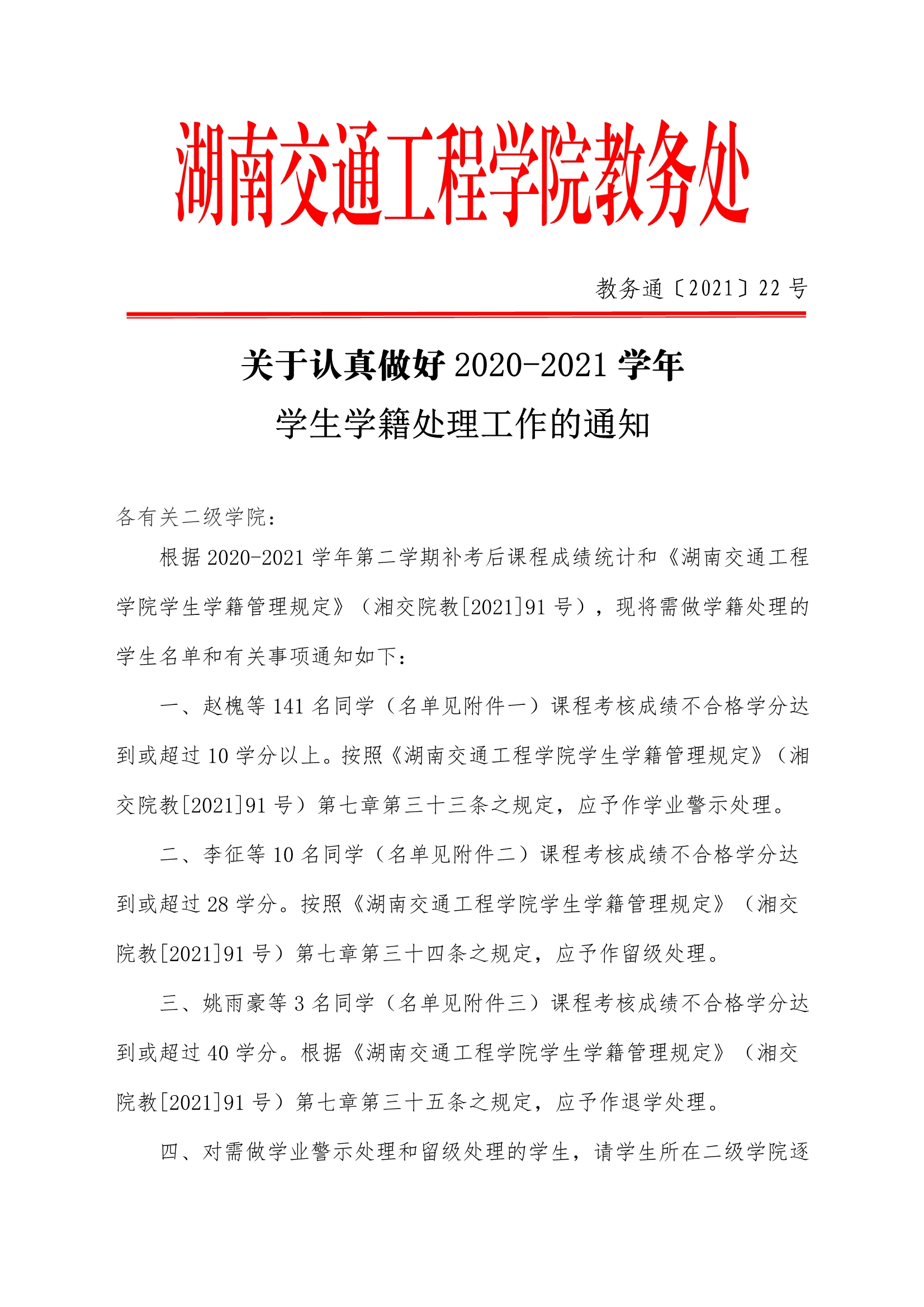 关于认真做好2020-2021学年学生学籍处理工作的通知(教务通〔2021〕22号)