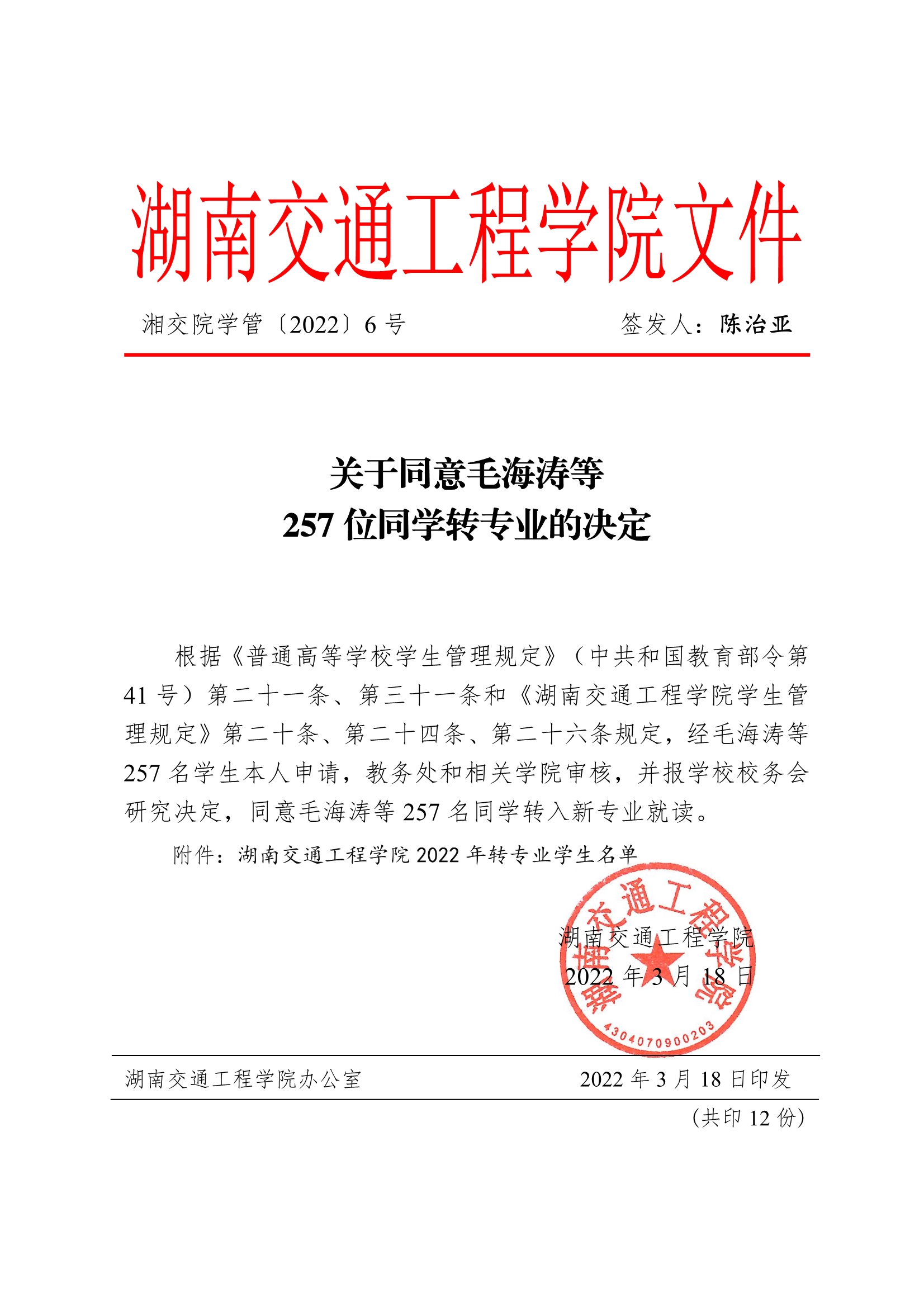 湘交院学管〔2022〕6号(关于同意毛海涛等257位同学转专业的决定).pdf