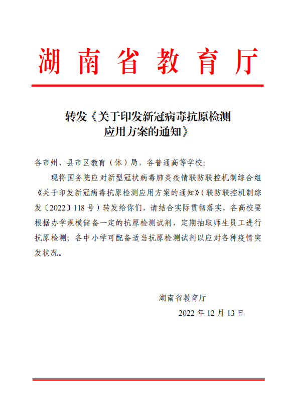 转发《关于印发新冠病毒抗原检测 应用方案的通知》