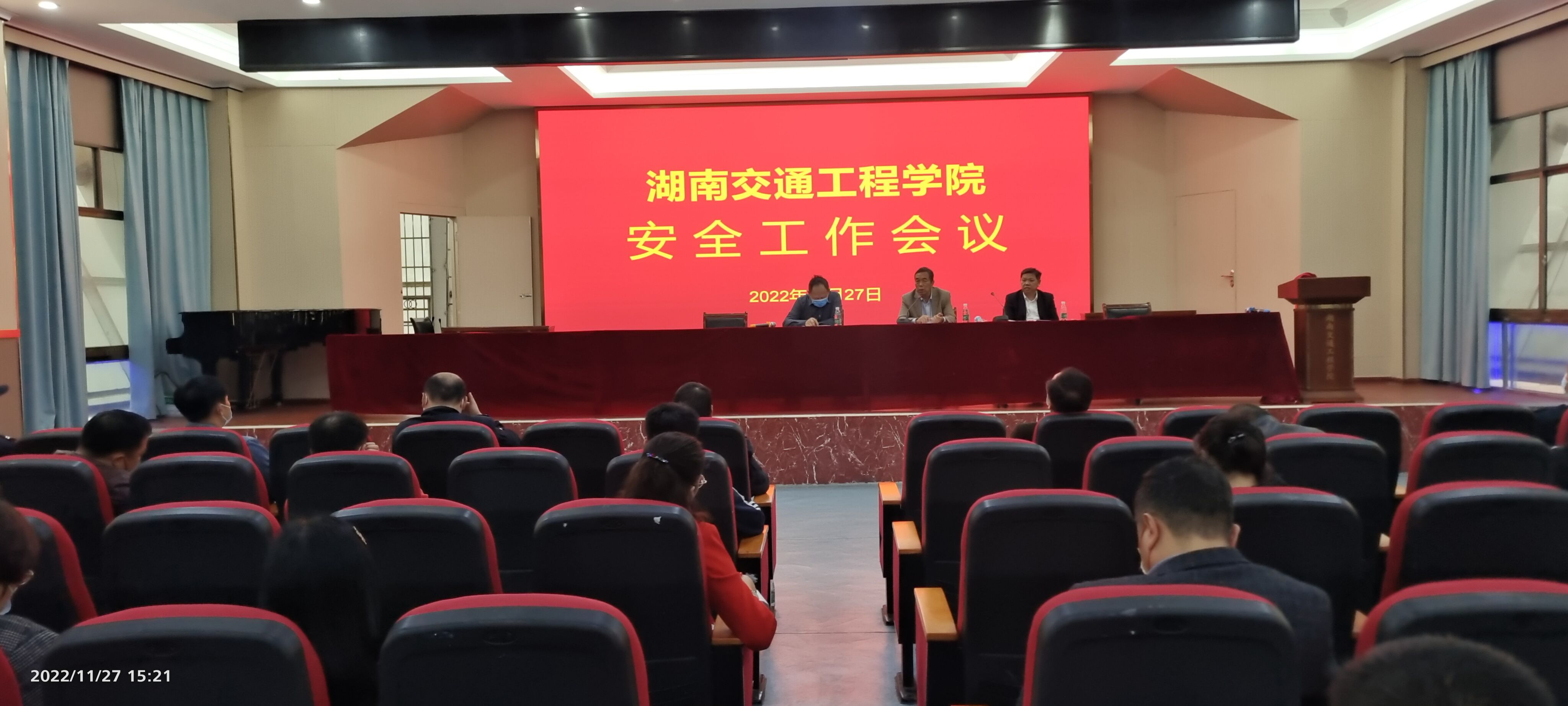 11月27日14:30,best365官网校园安全工作专题会议在航母楼101会议室召开。常务副校长彭文武主持,董事长刘福生参加会议并作工作安排部署。会议分两个阶段进行首先由副校长余孟辉就疫情防控、校园安全、校园四化建设作发言。