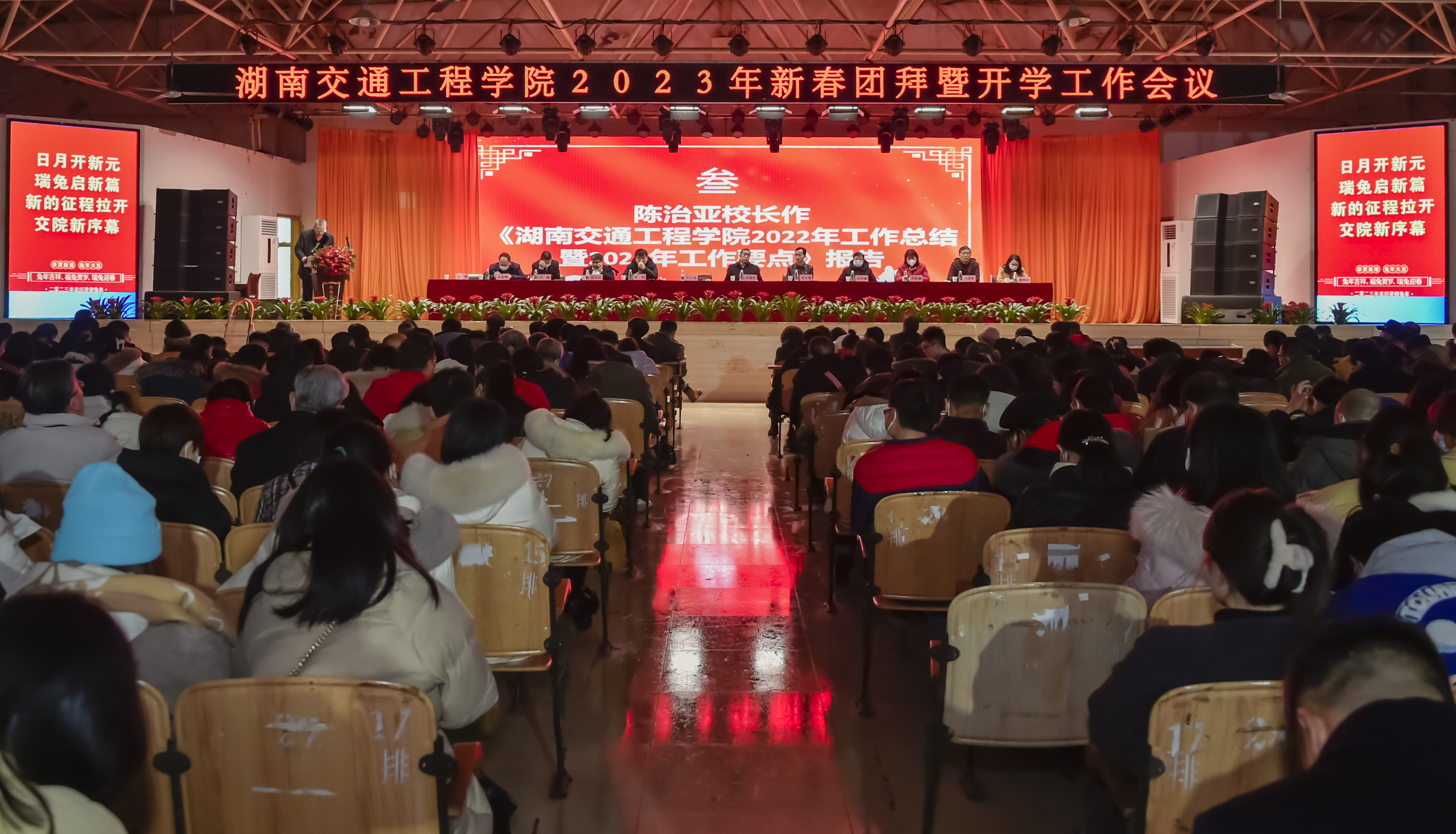 本网讯(记者 赵红深 摄影 李建华 )虎年已去春风暖,兔岁乍来喜气浓。2月8日上午,学校2023年新春团拜暨开学工作会议在学校大学生活动中心隆重召开。会议由执行校长刘杰主持,全体教职员工参加会议。