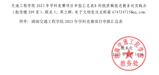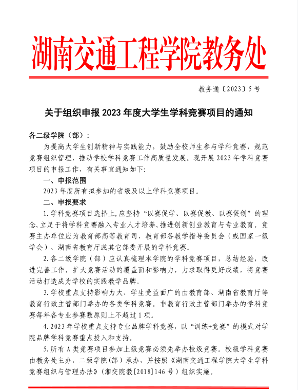 关于组织申报 2023 年度大学生学科竞赛项目的通知
