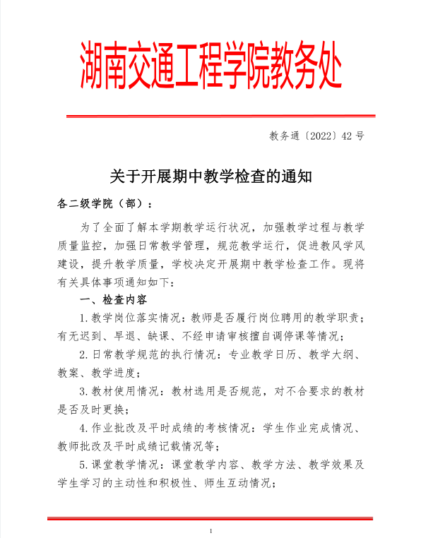 关于开展期中教学检查的通知
