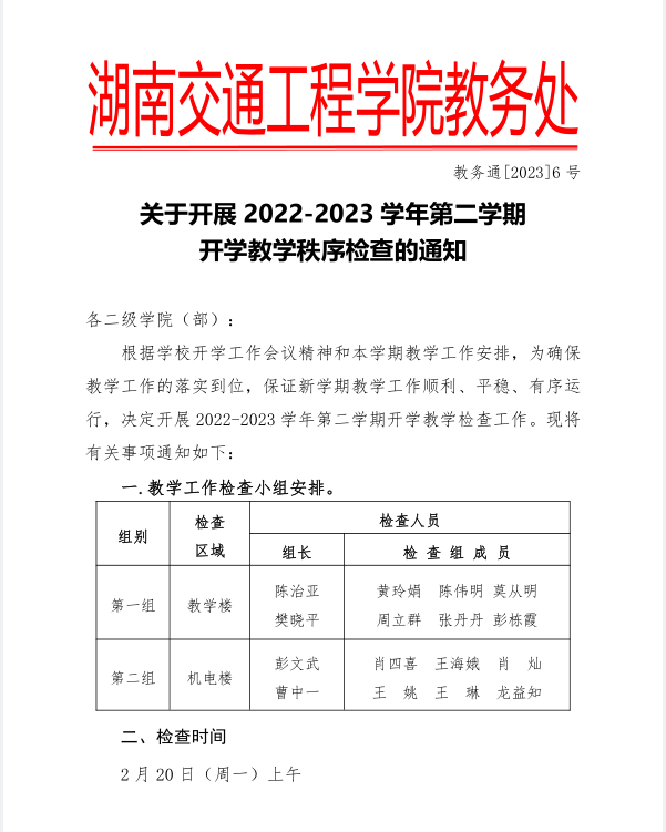 关于开展2022-2023学年第二学期开学教学秩序检查的通知