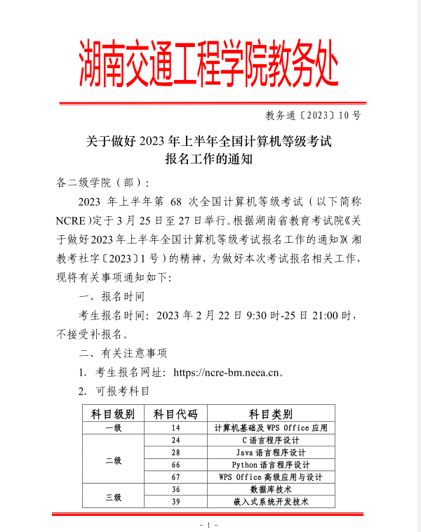 关于做好2023年上半年全国计算机等级考试报名工作的通知