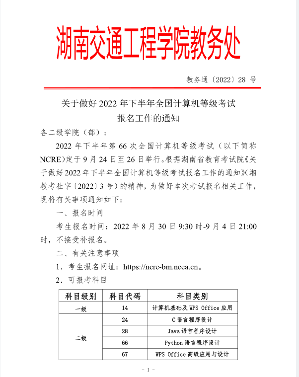 关于做好2022年下半年全国计算机等级考试报名工作的通知