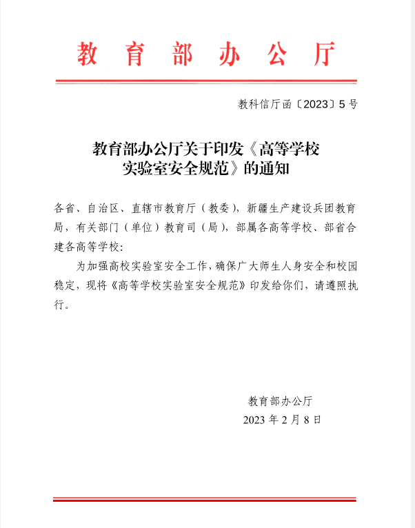 教育部办公厅关于印发《高等学校 实验室安全规范》的通知
