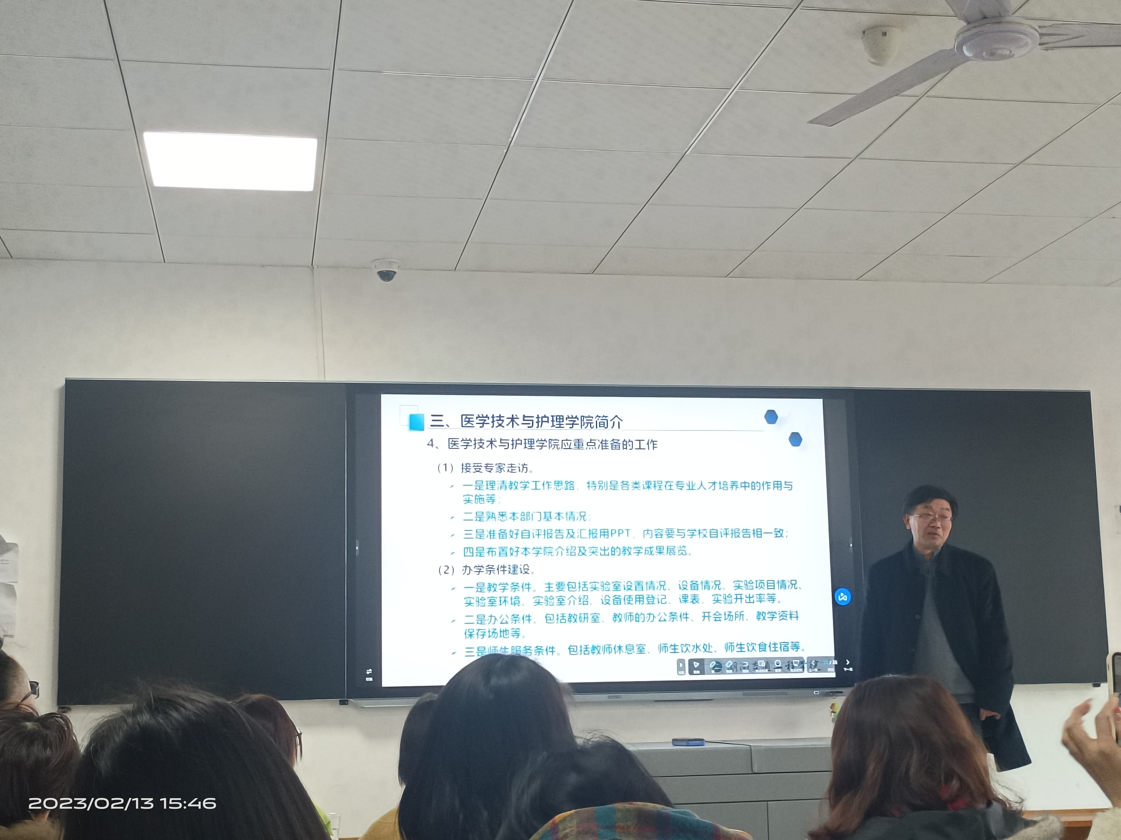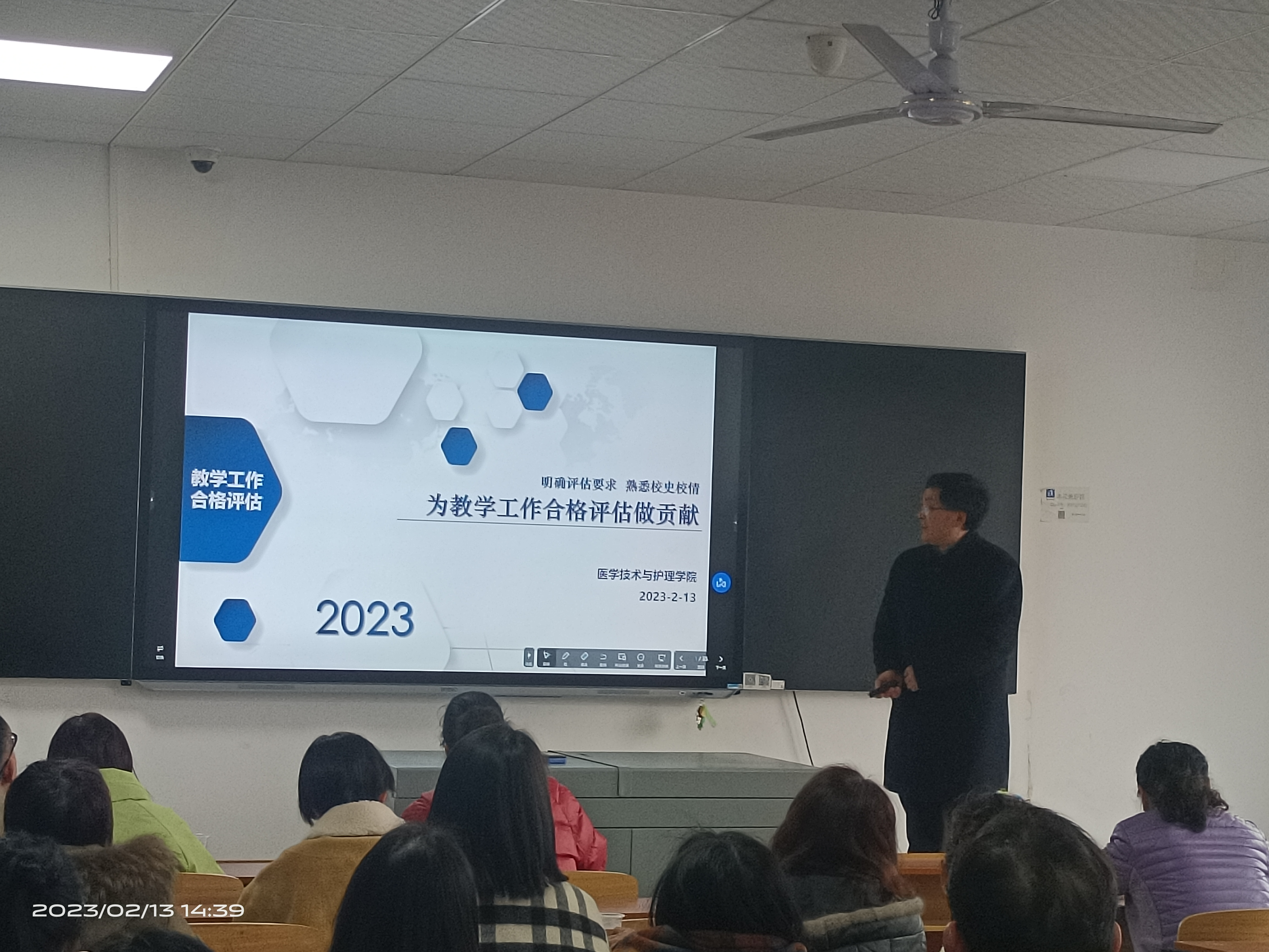 为推进学校教育部本科教学工作合格评估的迎评促建工作稳步开展,切实做好评估各项工作,2月13日下午二点半,医学技术与护理学院院长陈熙在教学楼103教室召开了以“明确评估要求 ,熟悉校史校情---为教学工作合格评估做贡献”为主题的的迎评会议。邓丽书记、肖桂香副书记、廖小立副院长、全体教师参加并共同探讨如何做好评估工作。
