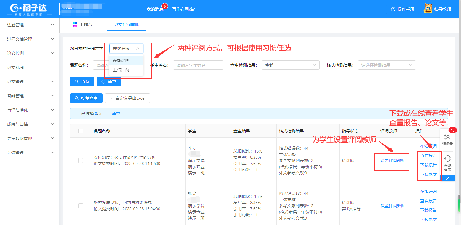 1.设置评阅教师