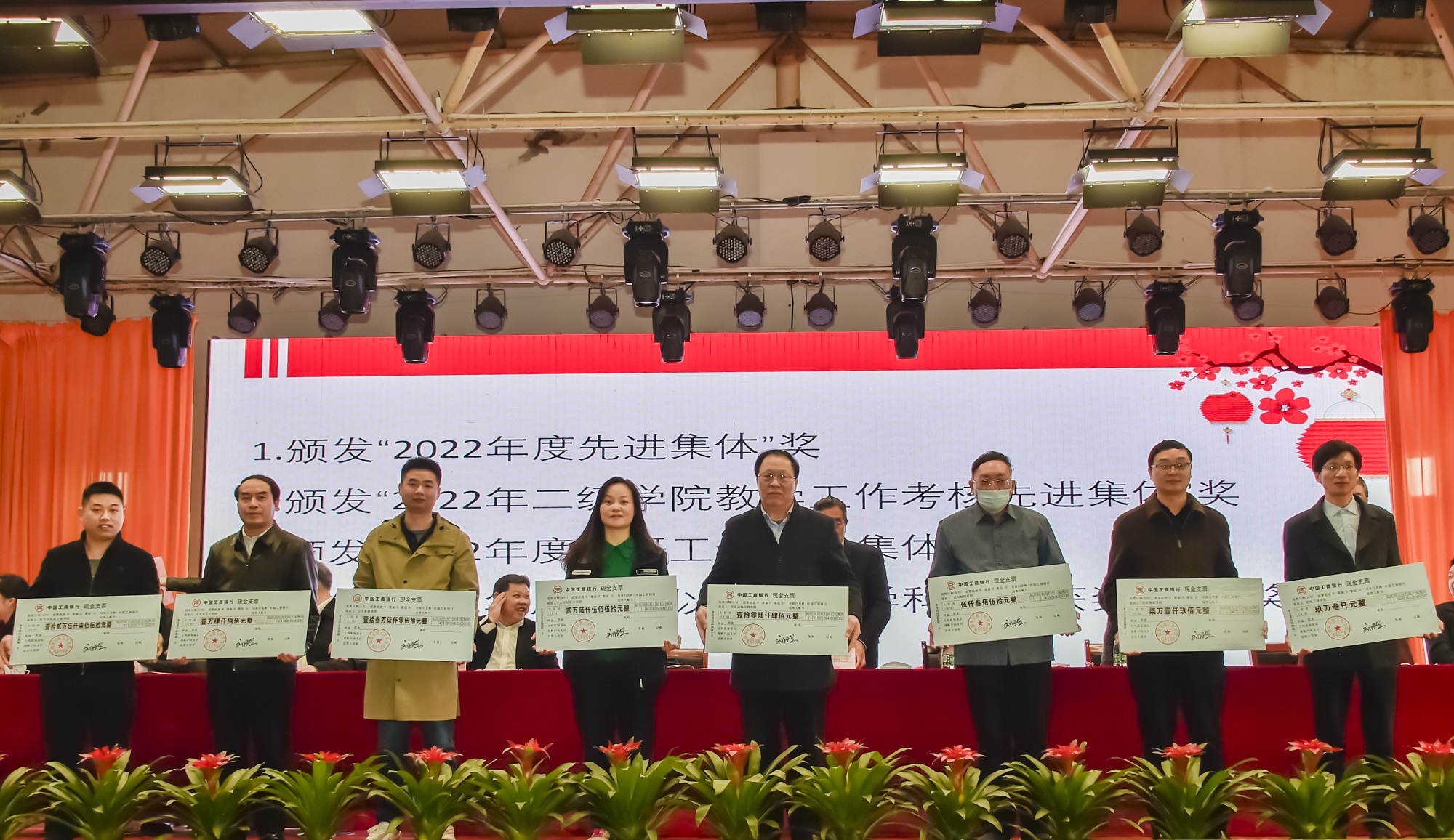 本网讯(记者 赵红深 摄影  李建华 奉隆源3月5日下午,学校在大学生活动中心隆重举行2022年度先进表彰暨2023年本科教学工作迎评动员大会,全体校领导出席会议,全体教职工参会。