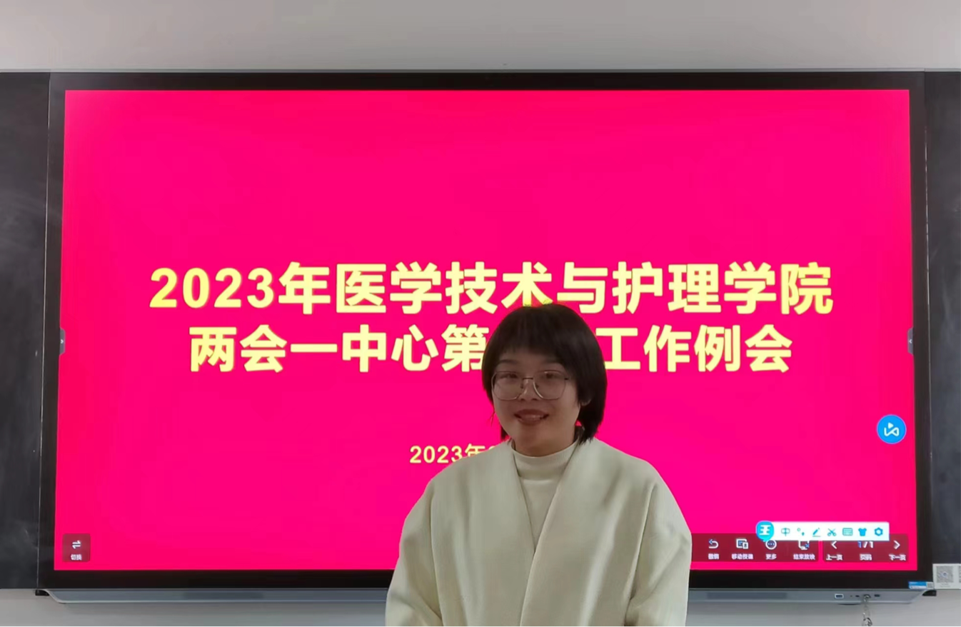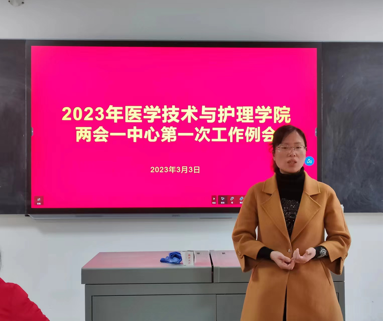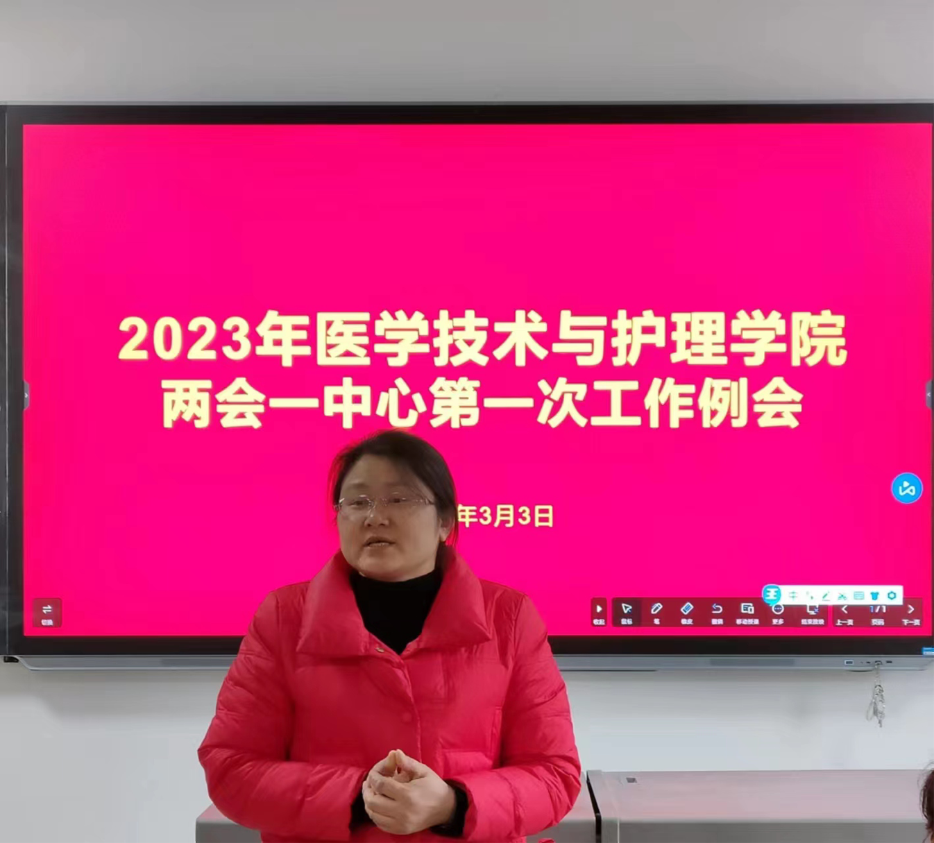 为提高两会一中心学生干部的工作效率和工作质量,医学技术与护理学院于3月3日中午在教学楼103教室召开2023年两会一中心第一次例会。出席工作会议的有医学技术与护理学院党总支书记邓丽、党总支副书记兼团总支书记肖桂香、通讯指导员曾仪及两会一中心负责人胡倩星、部分两会一中心人员。